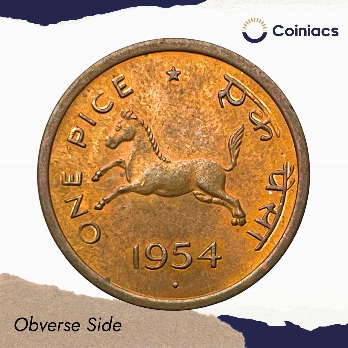 One Pice (Horse Pice) Anna Series 1954 Bombay Mint Bronze Coin, Republic India Anna Series, UNC.