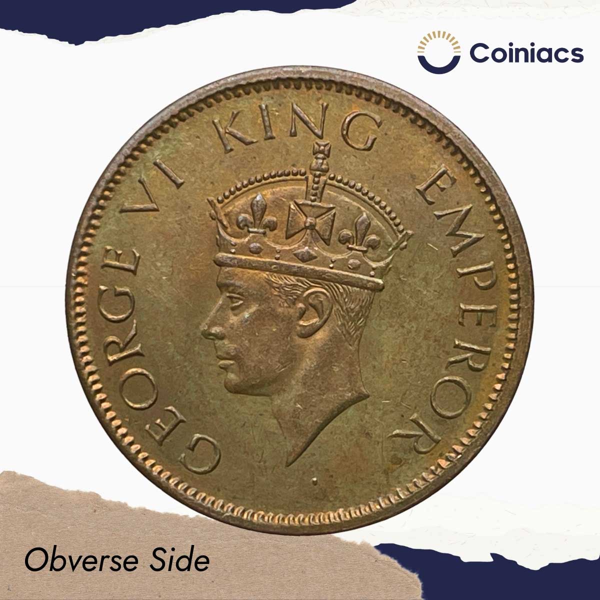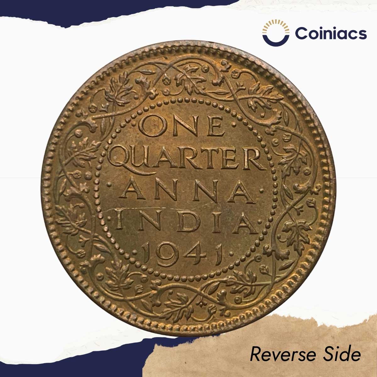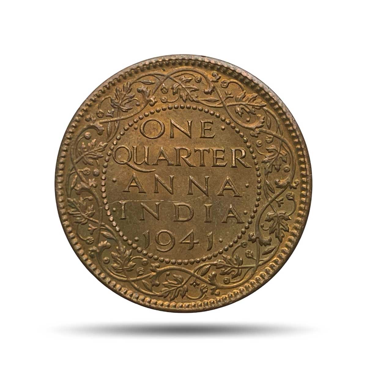 One Quarter Anna George VI King Emperor 1941 Calcutta Mint (Head II) Bronze Coin, British India Uniform Coinage, UNC.