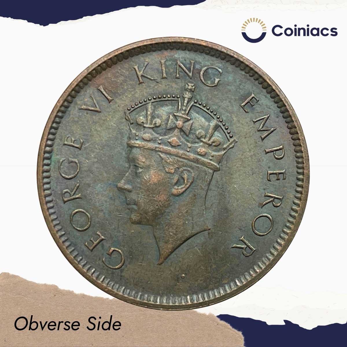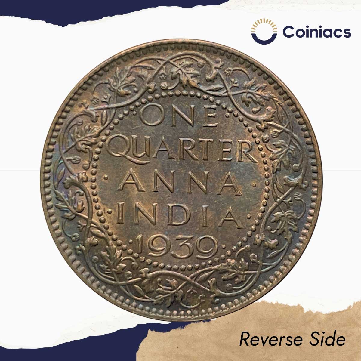 One Quarter Anna George VI King Emperor (Head I) 1939 Calcutta Mint Bronze Coin, British India Uniform Coinage, UNC.