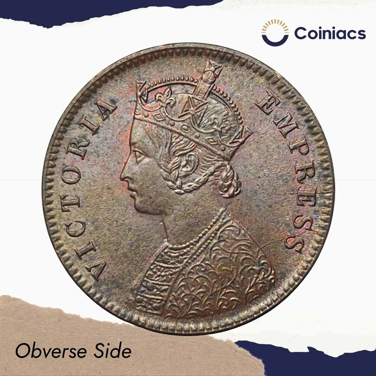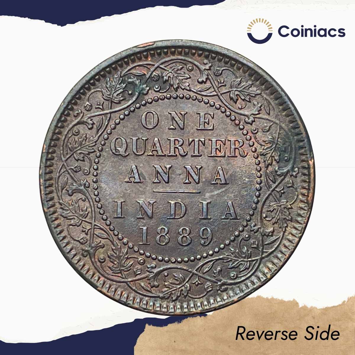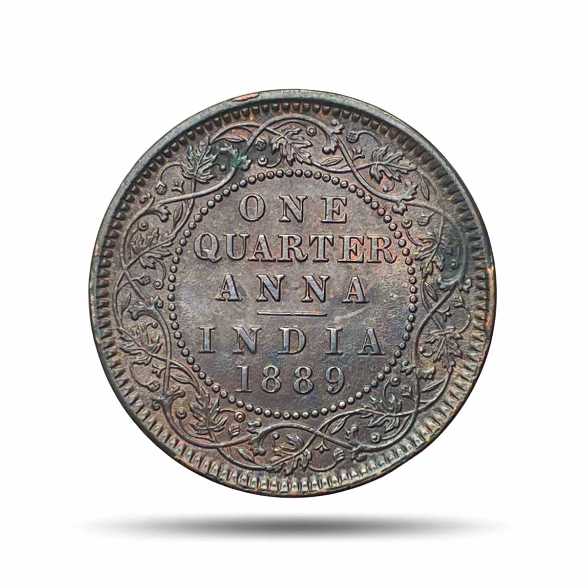 One Quarter Anna Victoria Empress 1889 (Key Date) Calcutta Mint (Obv B, Rev II) Copper Coin, British India Uniform Coinage, UNC.