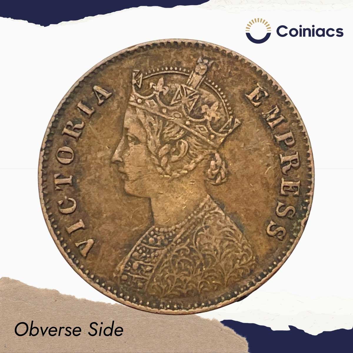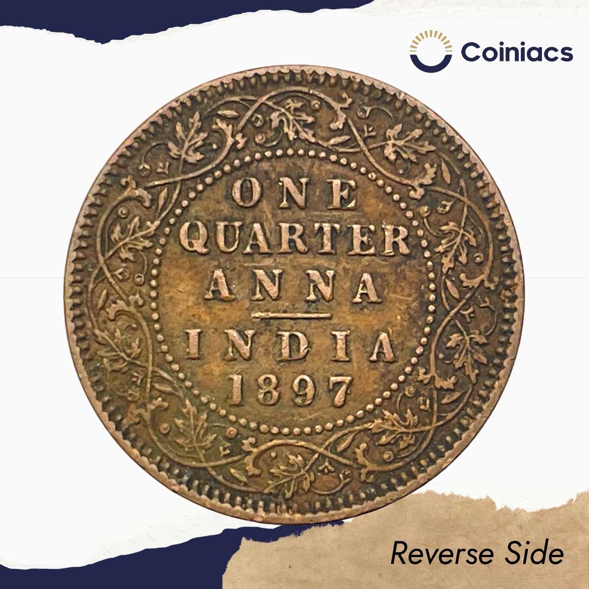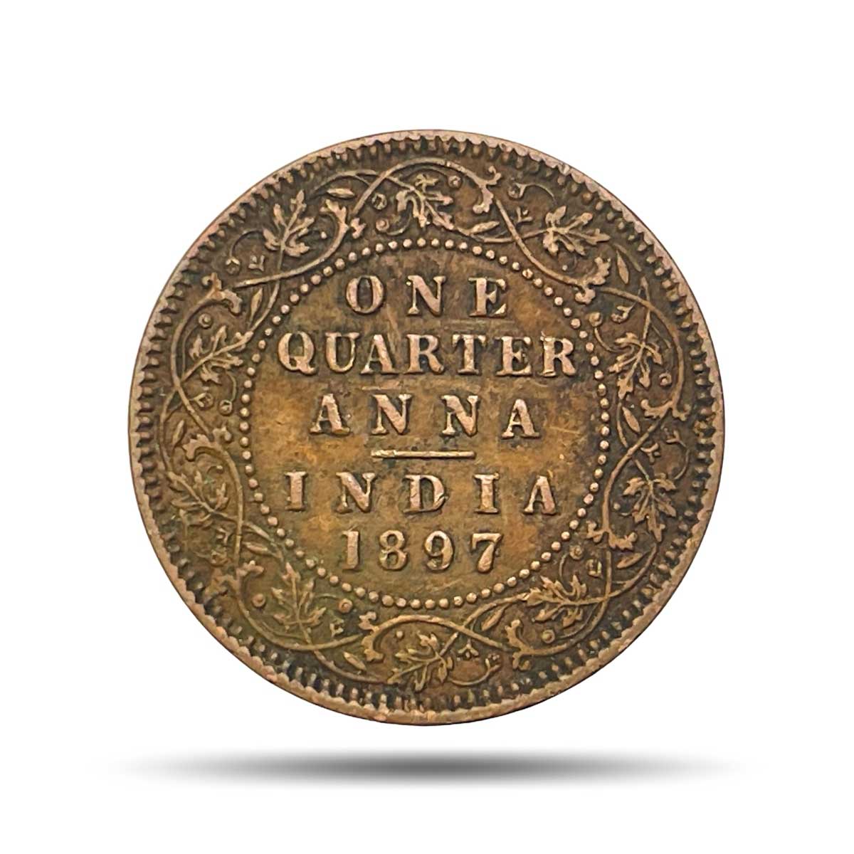One Quarter Anna Victoria Empress 1897 (Key Date) Calcutta Mint (Obv B, Rev II) Copper Coin, British India Uniform Coinage, Collectible.