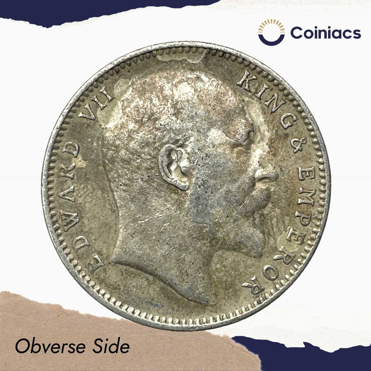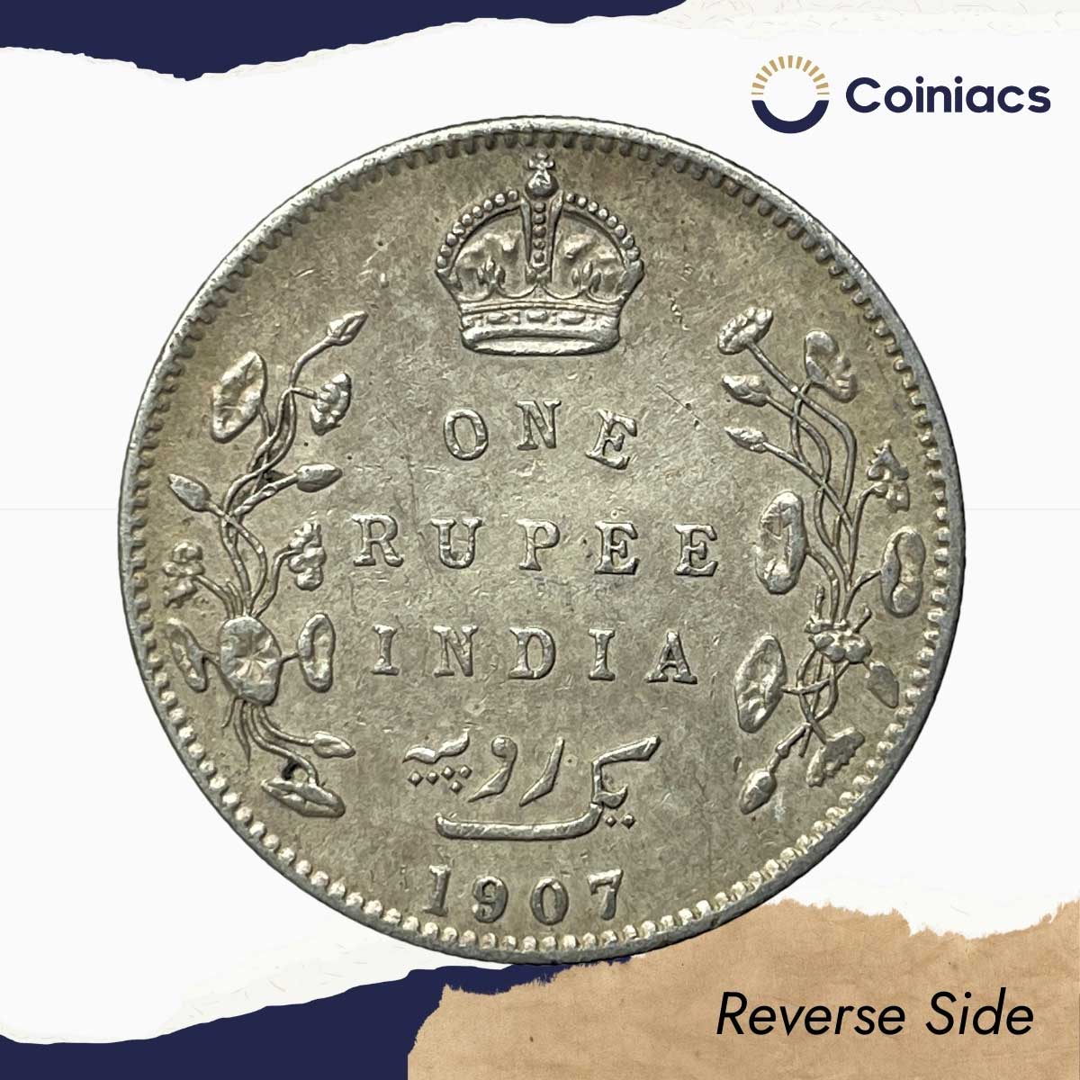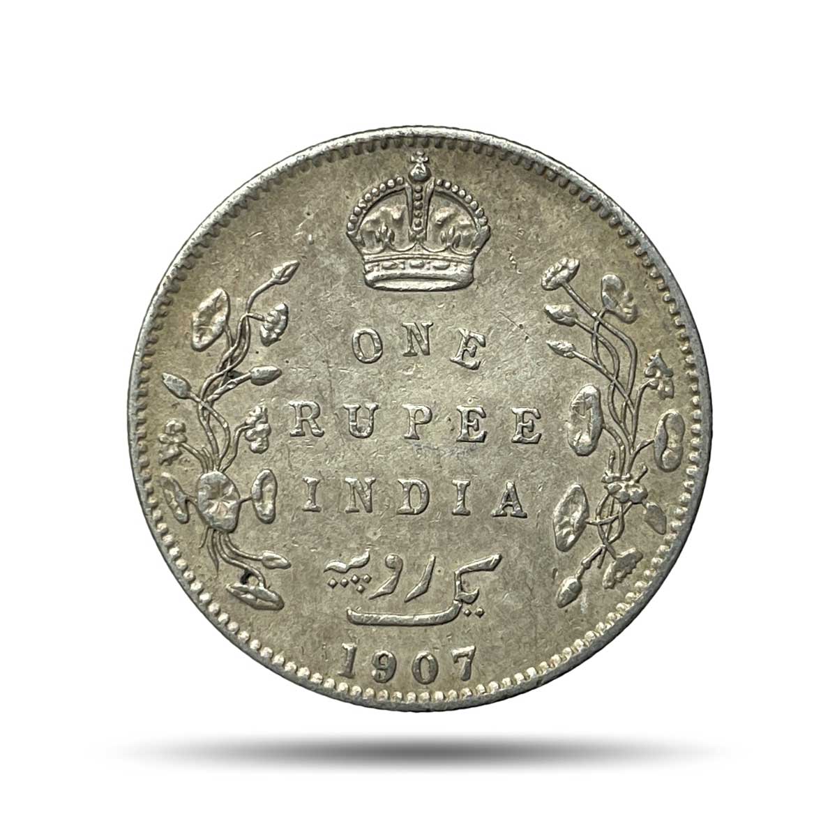 One Rupee Edward VII King & Emperor 1907 CE Bombay Mint Silver Coin, British India Uniform Coinage, Collectible.