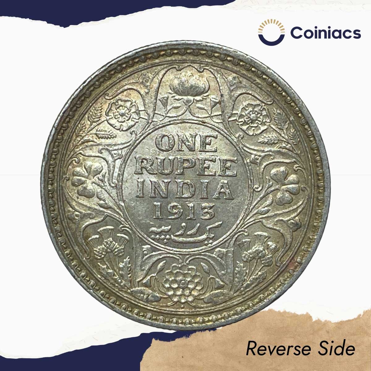 One Rupee George V 1913 CE Bombay Mint 11.6 gms Silver coin, British India Uniform Coinage, XF+.