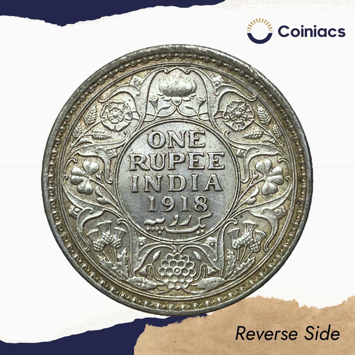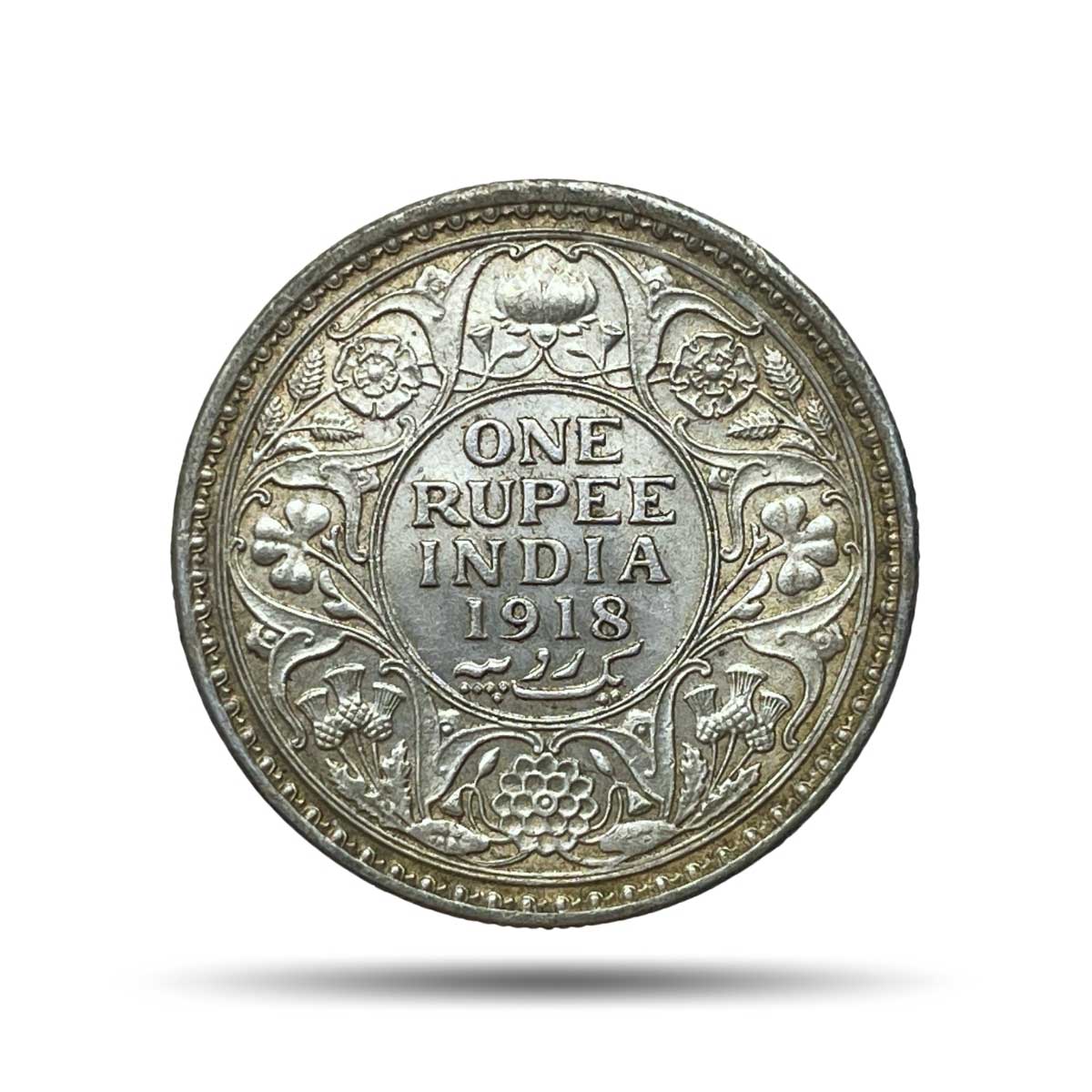 One Rupee George V 1918 CE Calcutta Mint 11.6 gms Silver coin, British India Uniform Coinage, XF+.