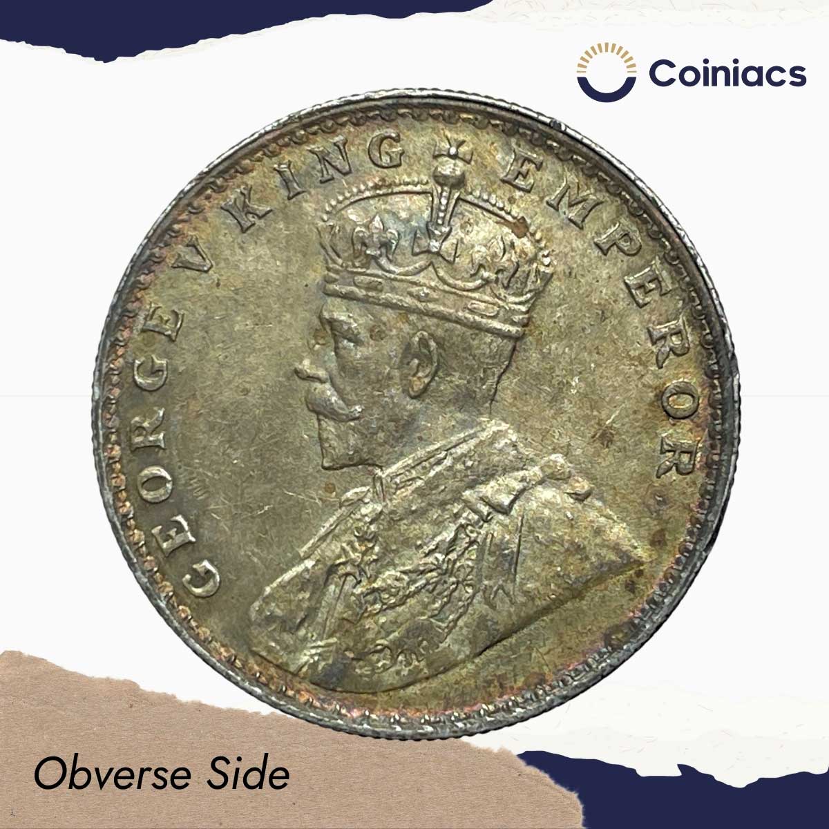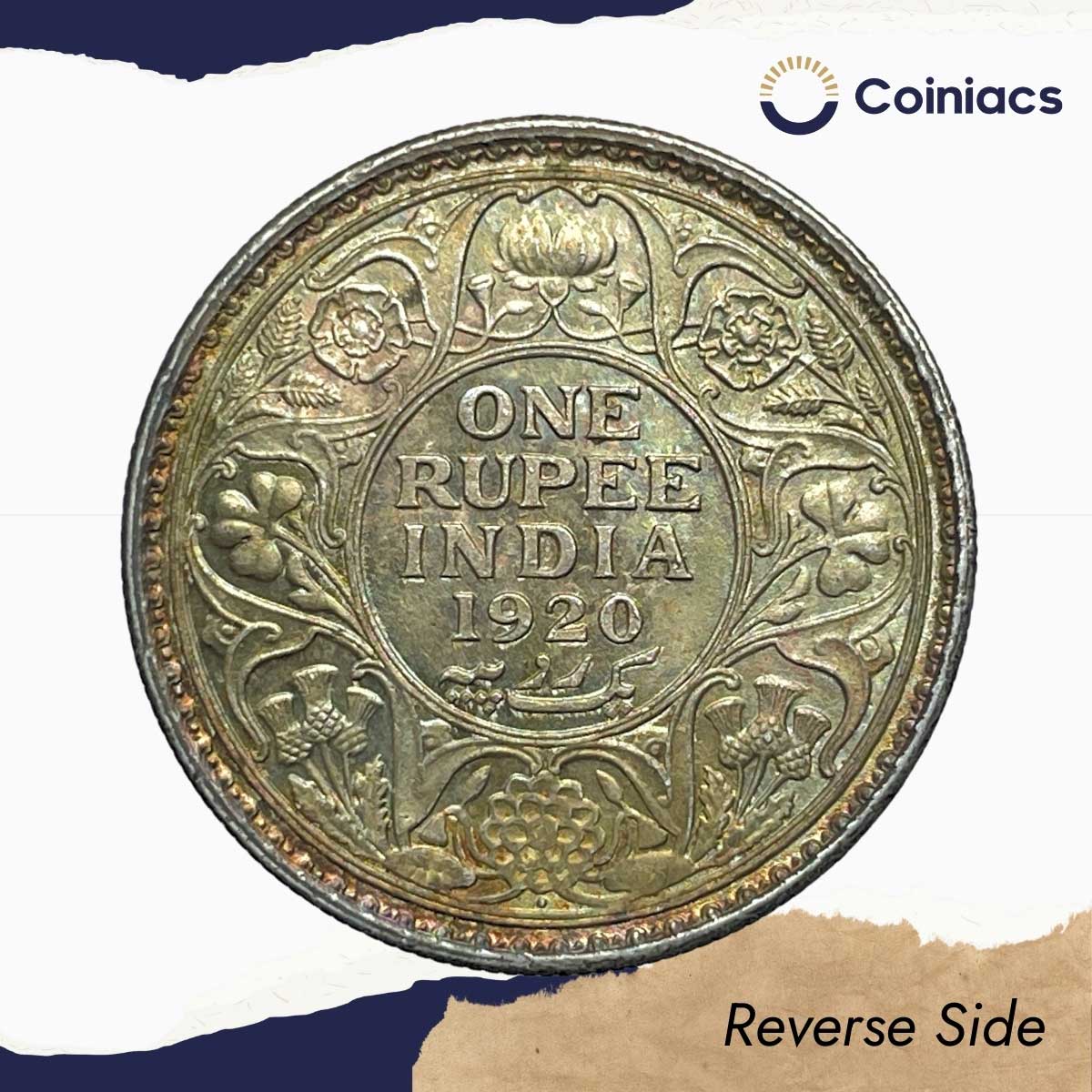 One Rupee George V 1920 CE Bombay Mint Silver coin, British India Uniform Coinage, UNC.