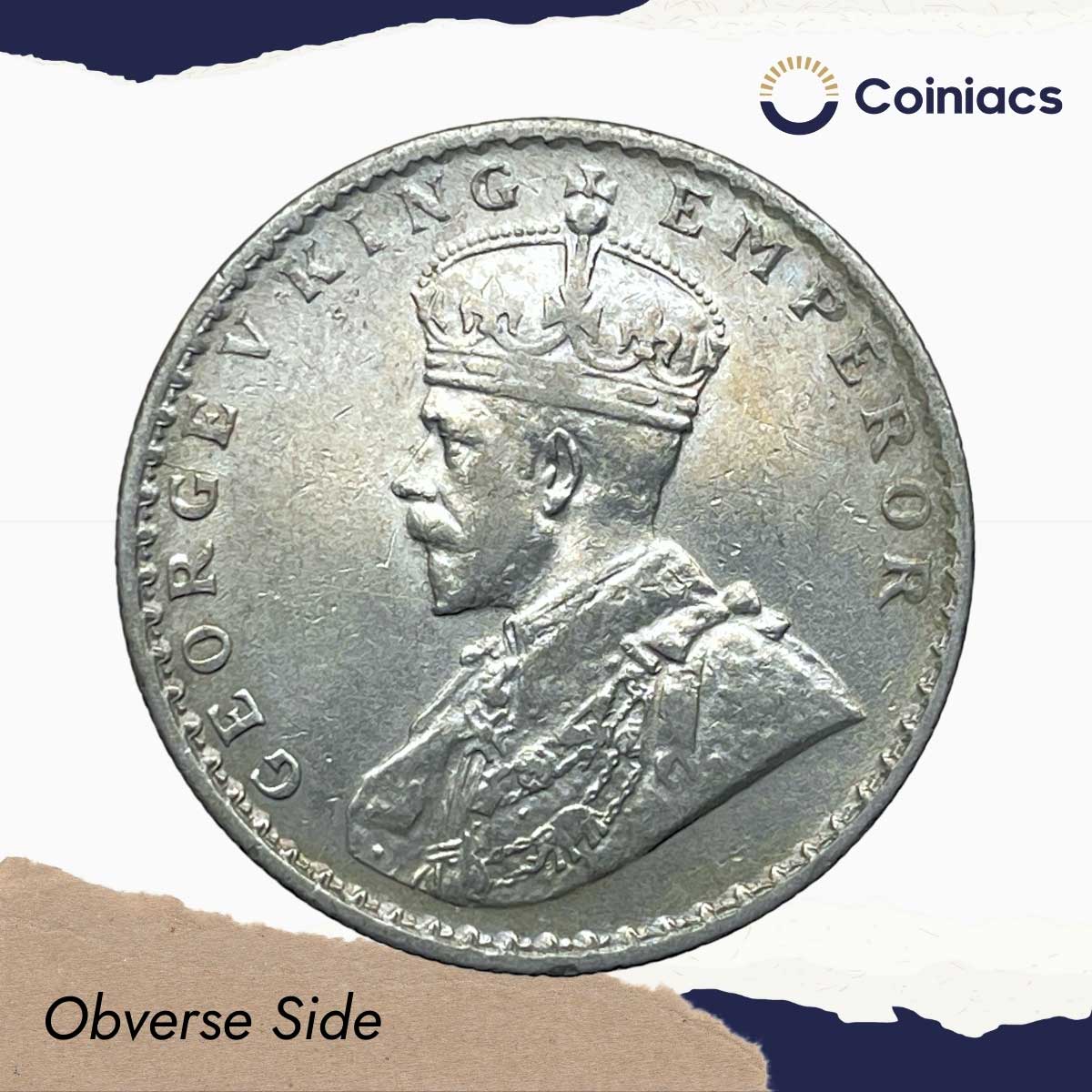 One Rupee George V King Emperor 1912 CE Calcutta Mint 11.6 grams Silver coin, British India Uniform Coinage, Collectible.