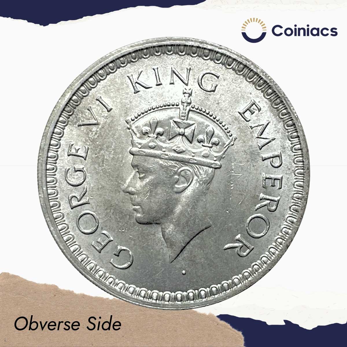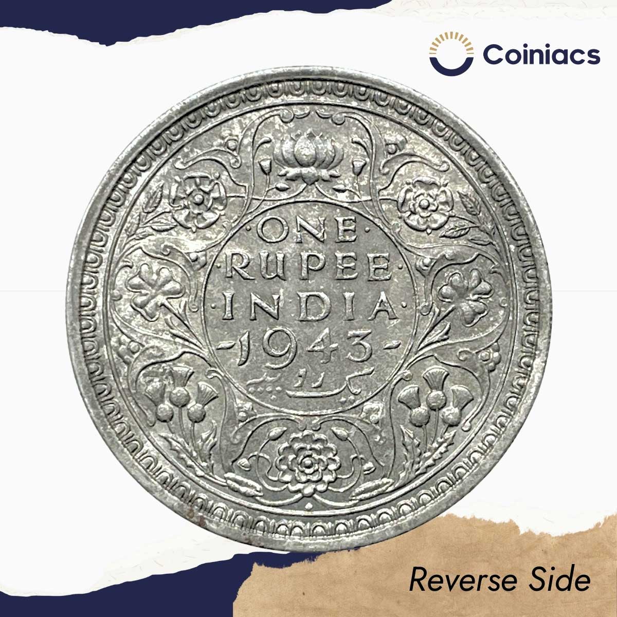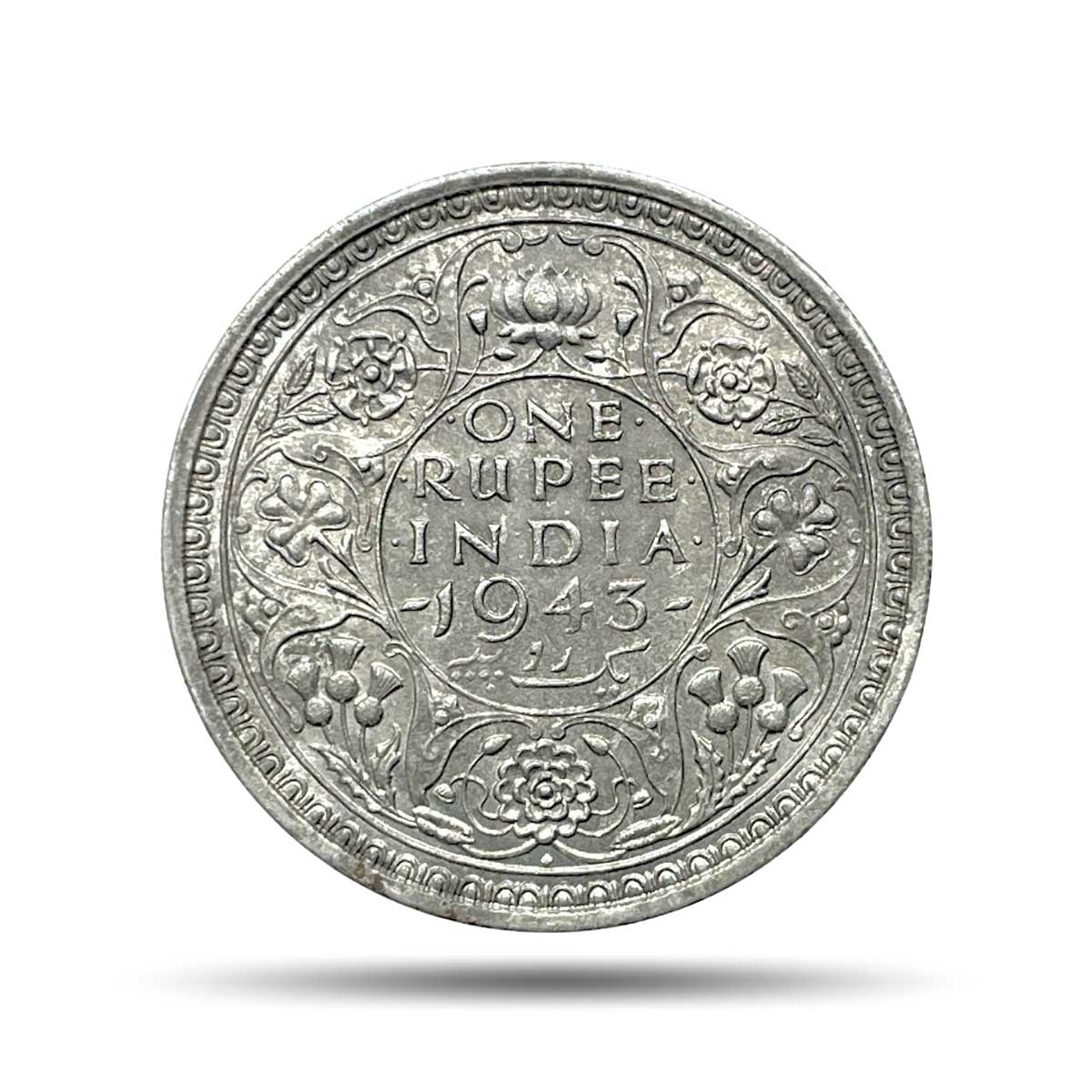 One Rupee George VI King Emperor 1943 CE Bombay Mint (Obv C, Rev II) 11.6 gms Silver Coin, British India Uniform Coinage, UNC.