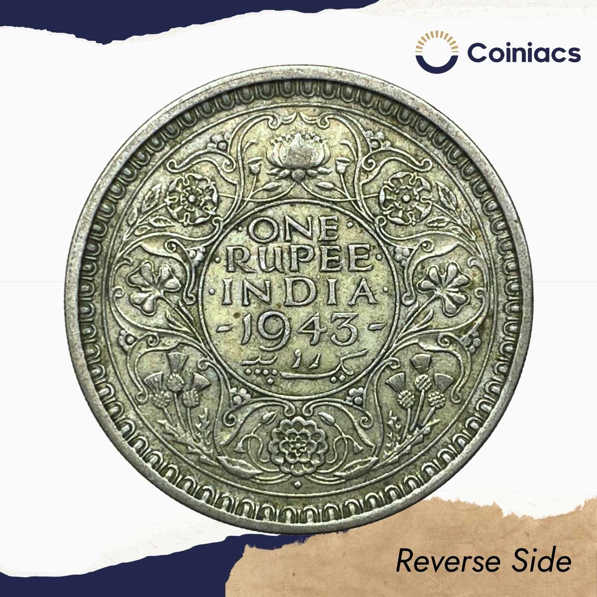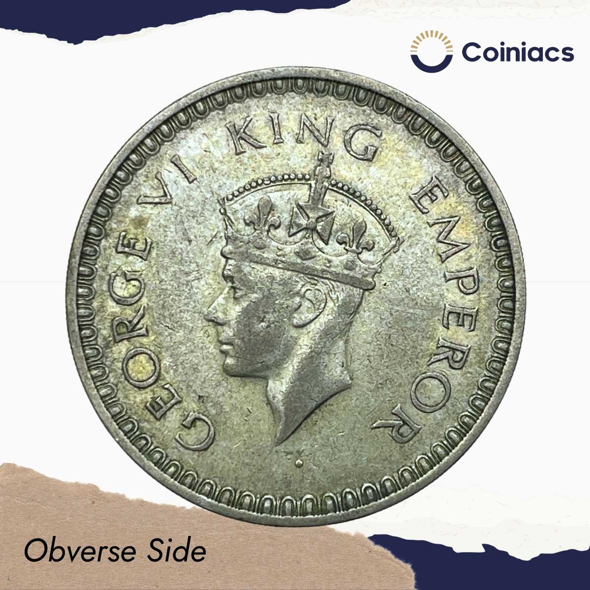 One Rupee George VI King Emperor 1943 CE Bombay Mint 11.6 gms Silver Coin, British India Uniform Coinage, Collectible.