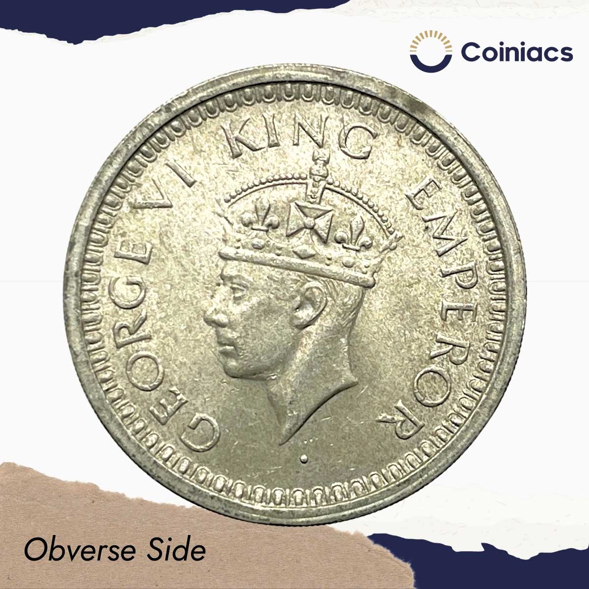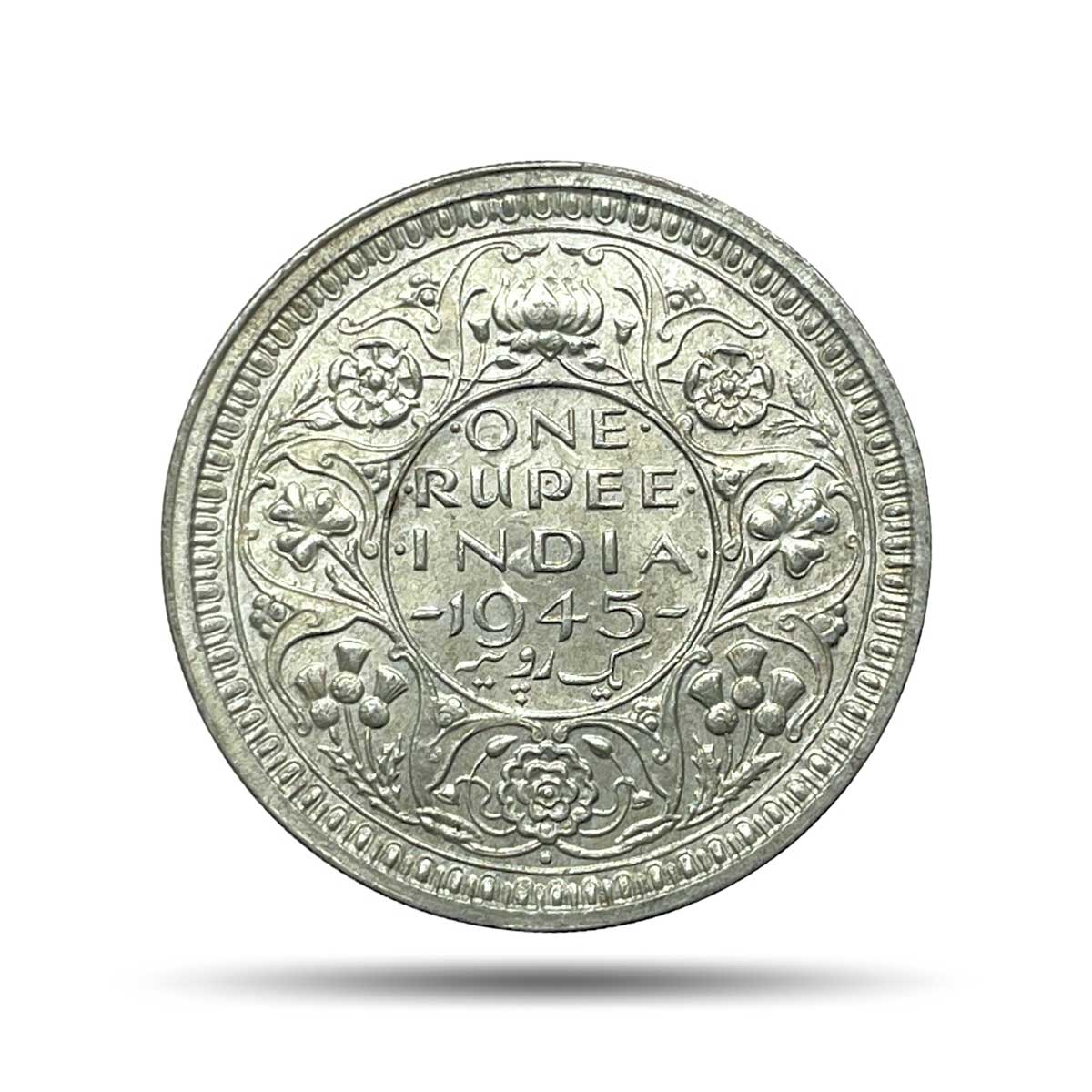 One Rupee George VI King Emperor 1945 CE Bombay Mint (Obv D, Rev II) 11.6 gms Silver Coin, British India Uniform Coinage, UNC.