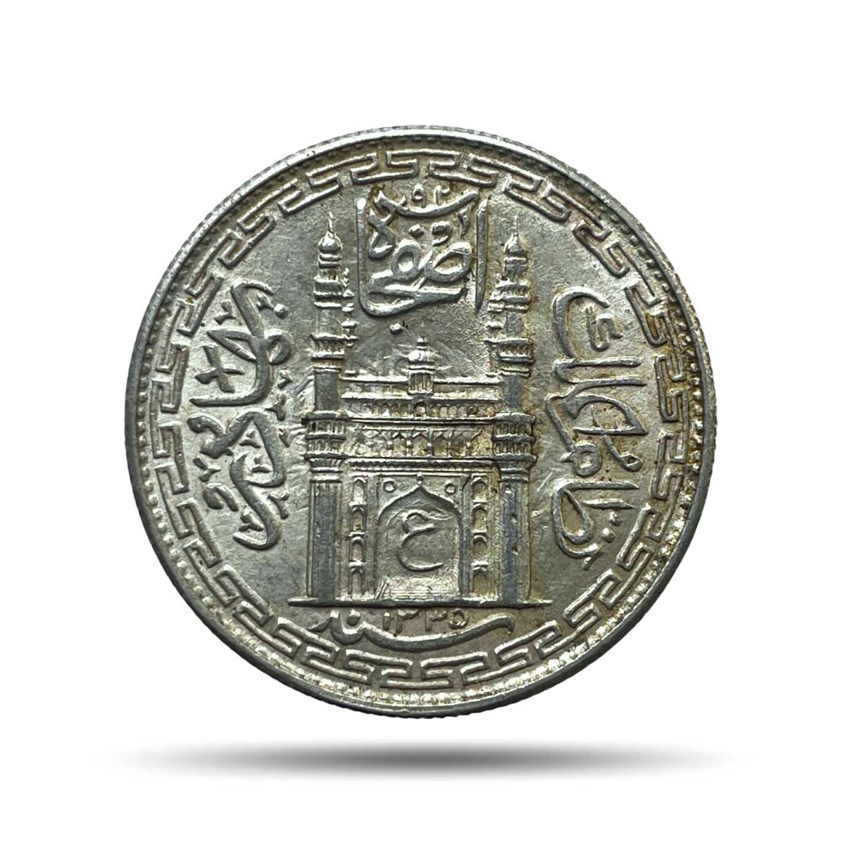 One Rupee Mir Usman Ali Khan RY-6 1335 AH Silver Coin Princely State of Hyderabad, XF+.