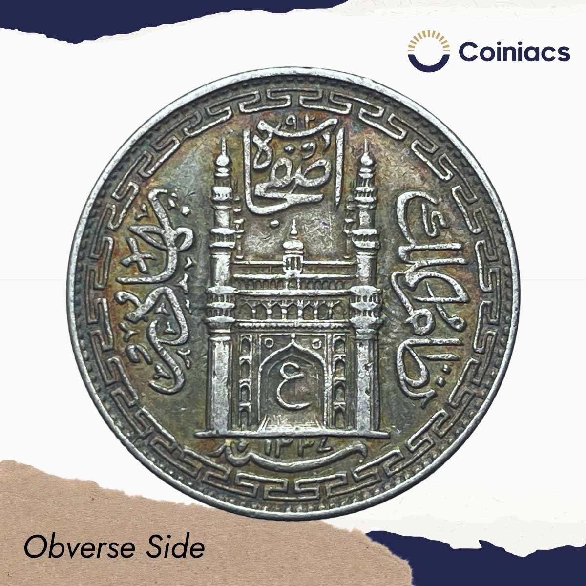 One Rupee Mir Usman Ali Khan RY-8 1337 AH Silver Coin Princely State of Hyderabad, Collectible.