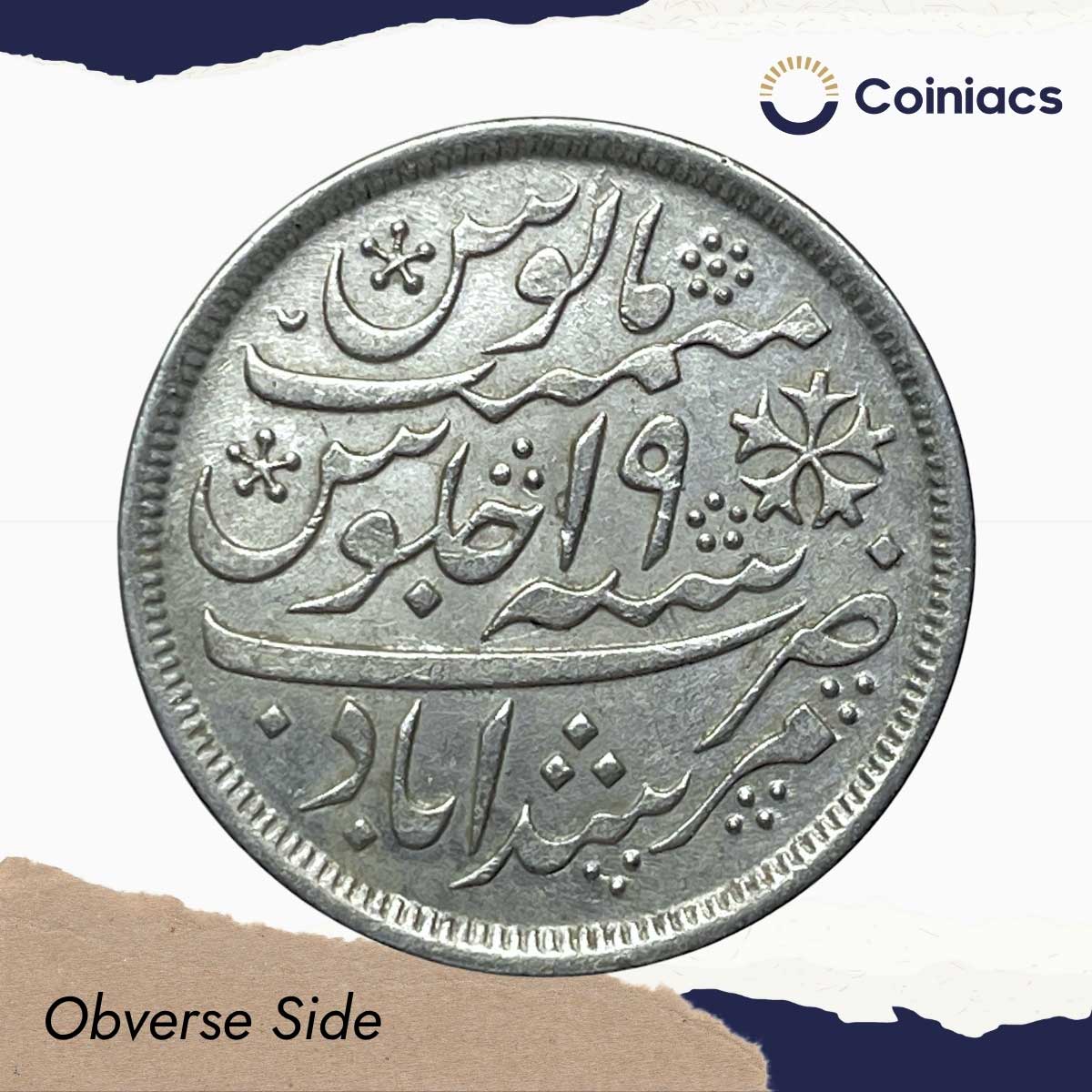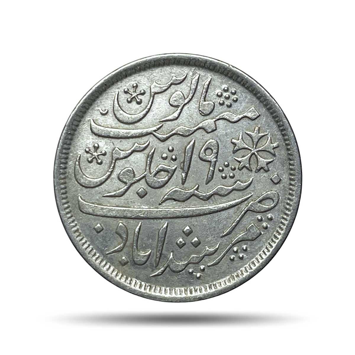One Rupee Shah Alam II RY 19 (1831-35 CE) Murshidabad Mint (Calcutta Mint) (Obv-A, Rev-I) Silver coin, Bengal Presidency (Machine Driven), XF.