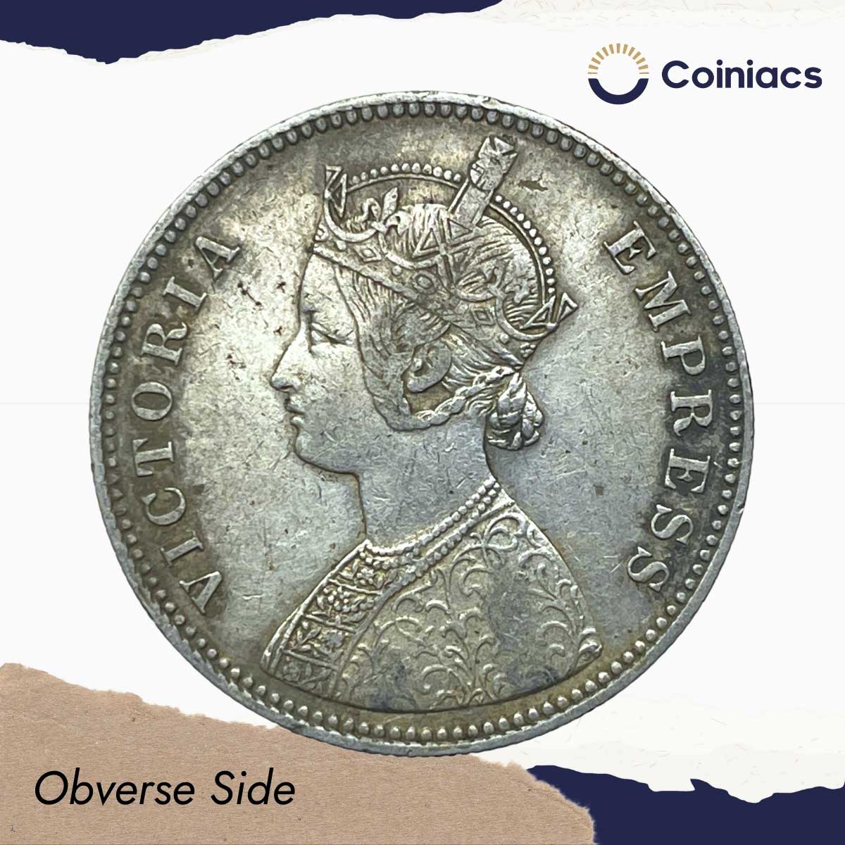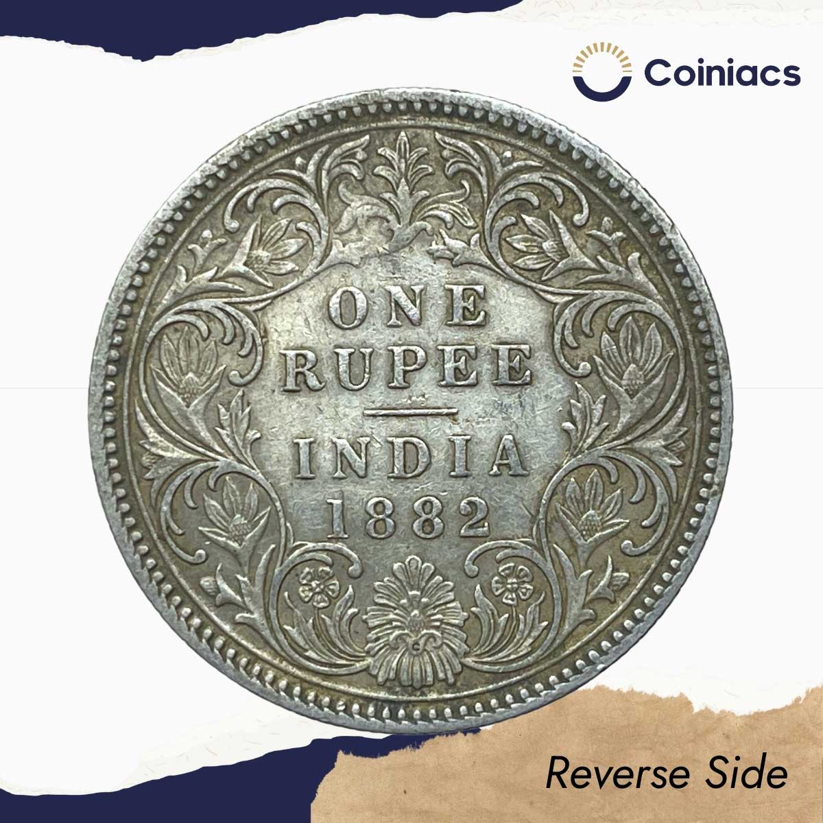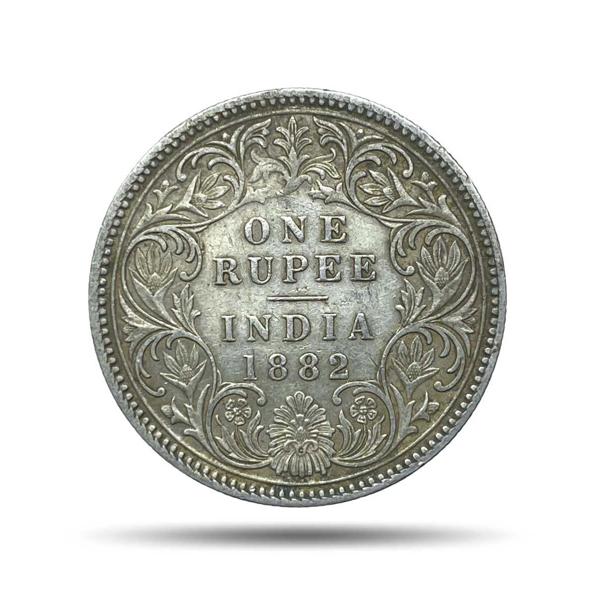 One Rupee Victoria Empress 1882 ‘C’ Incuse Calcutta Mint (Obv A1, Rev I) Silver Coin, British India Uniform Coinage, Collectible.