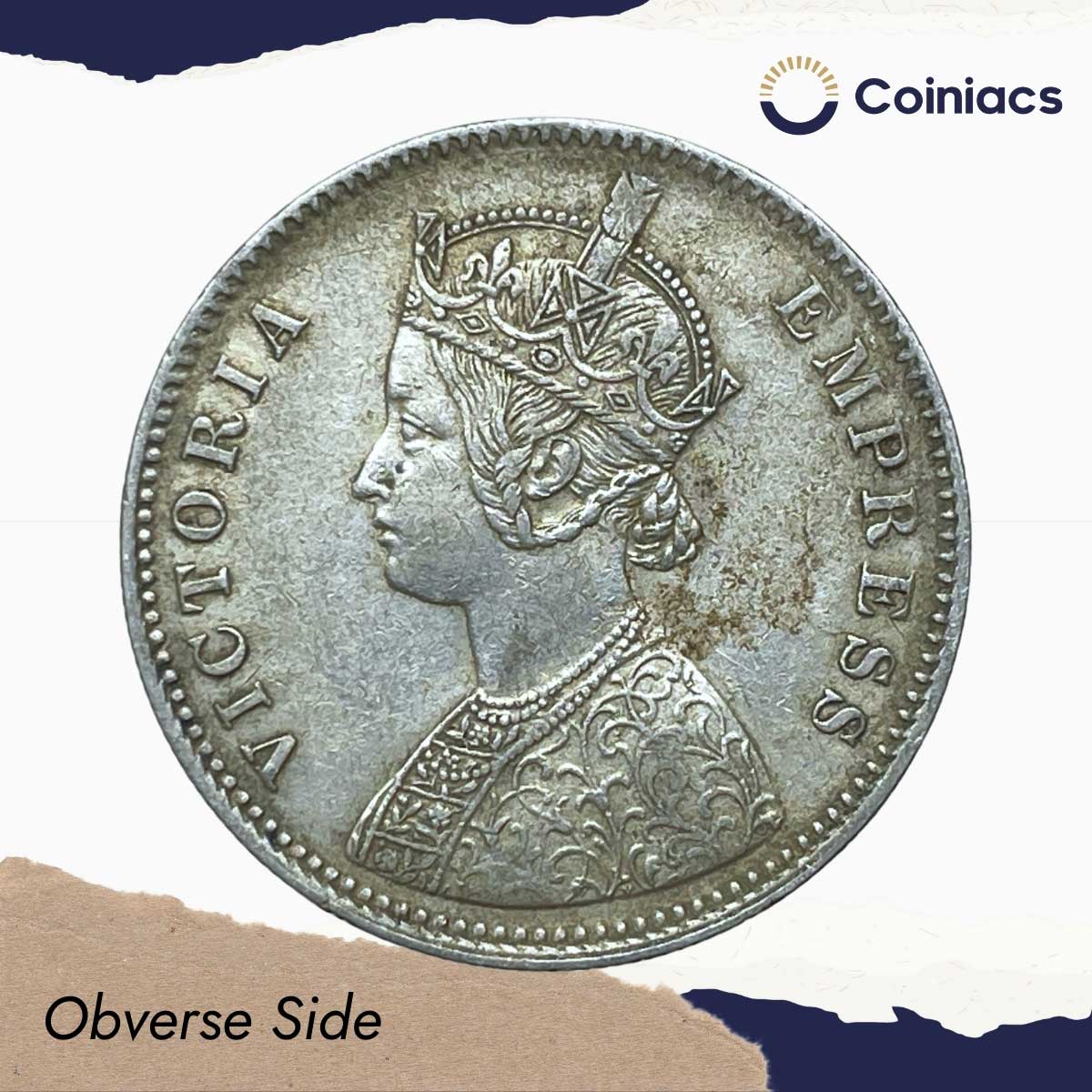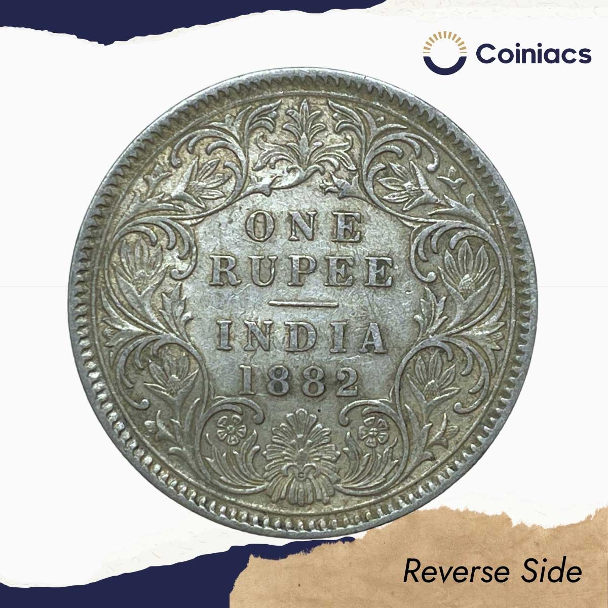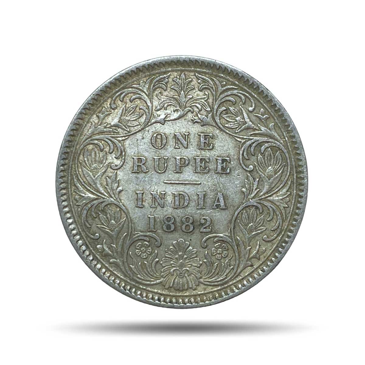One Rupee Victoria Empress 1882 CE (Obv AI, Rev I) ‘C’ Incused Calcutta Mint Silver Coin, British India Uniform Coinage, Collectible.