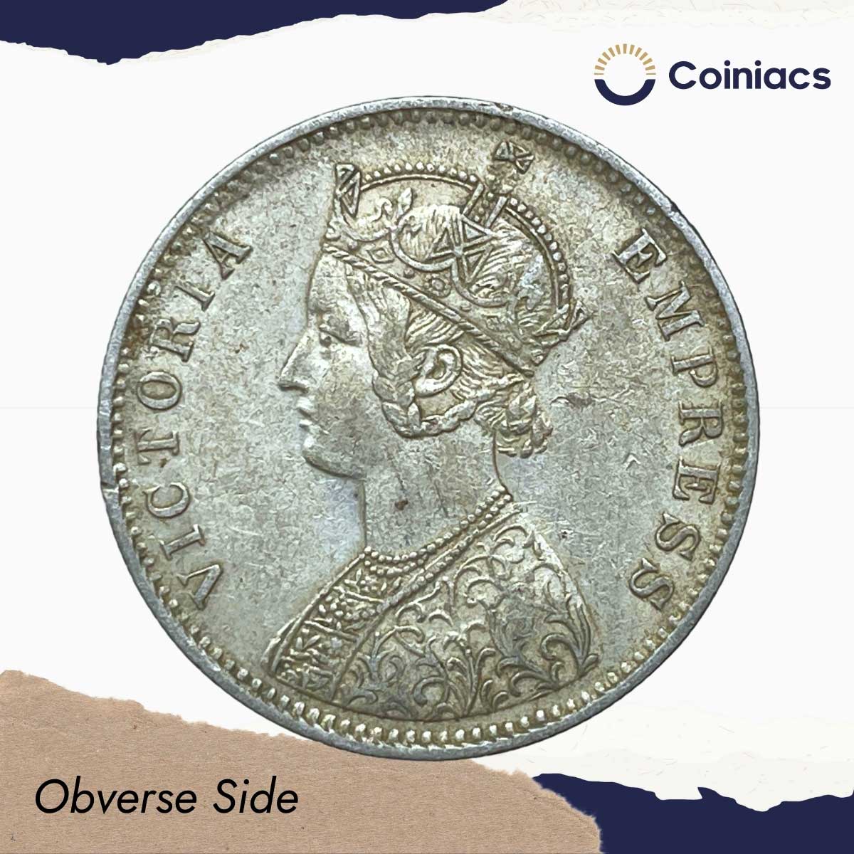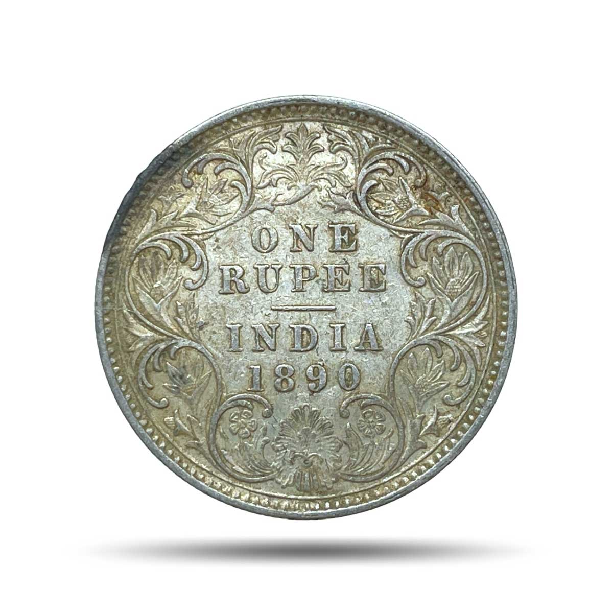 One Rupee Victoria Empress 1890 CE (Obv C3, Rev I(i))’C’ Incused Calcutta Mint Silver Coin, British India Uniform Coinage, Collectible.