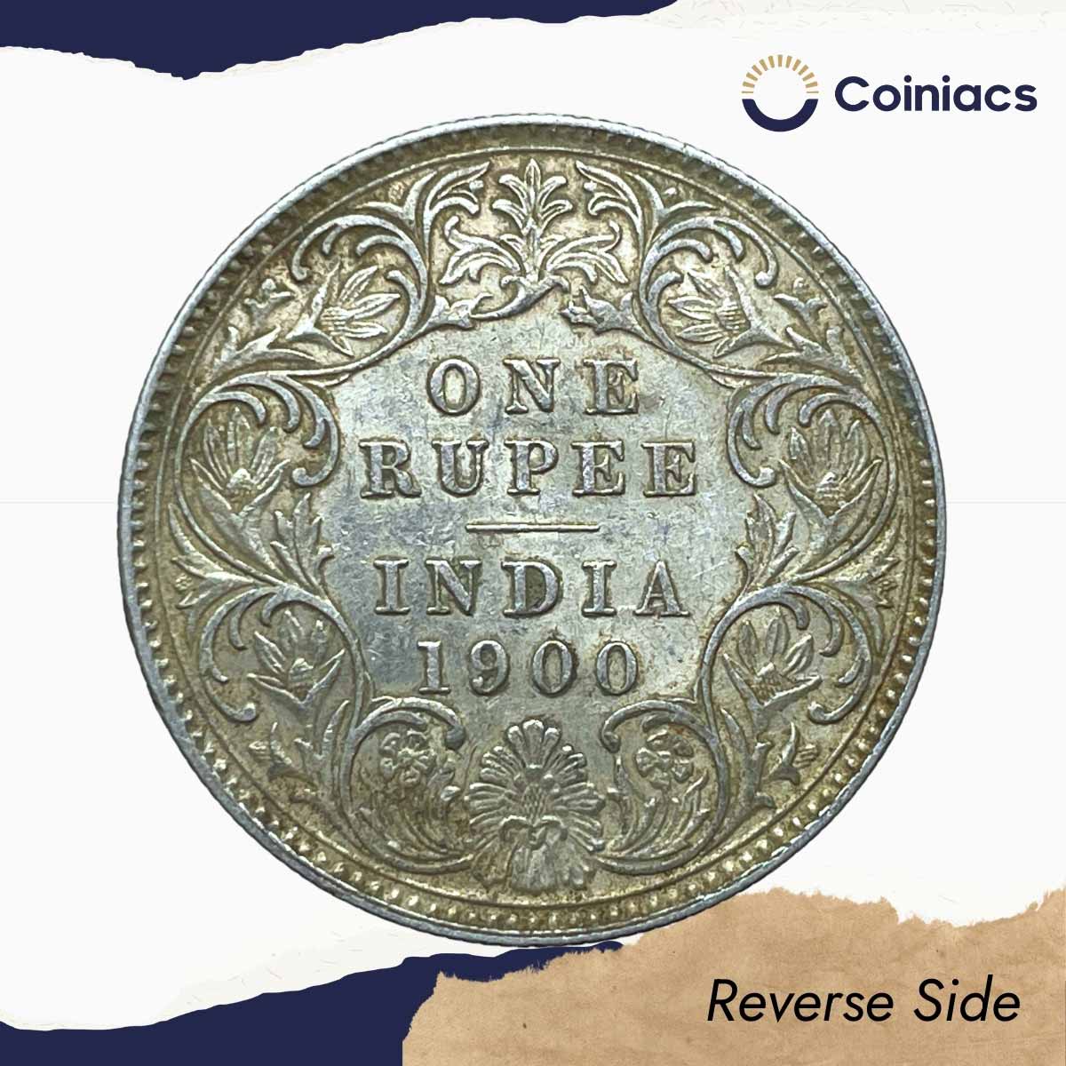 One Rupee Victoria Empress 1900 CE (Obv C3, Rev I(i)) ‘C’ Incused Calcutta Mint Silver Coin, British India Uniform Coinage, Collectible.