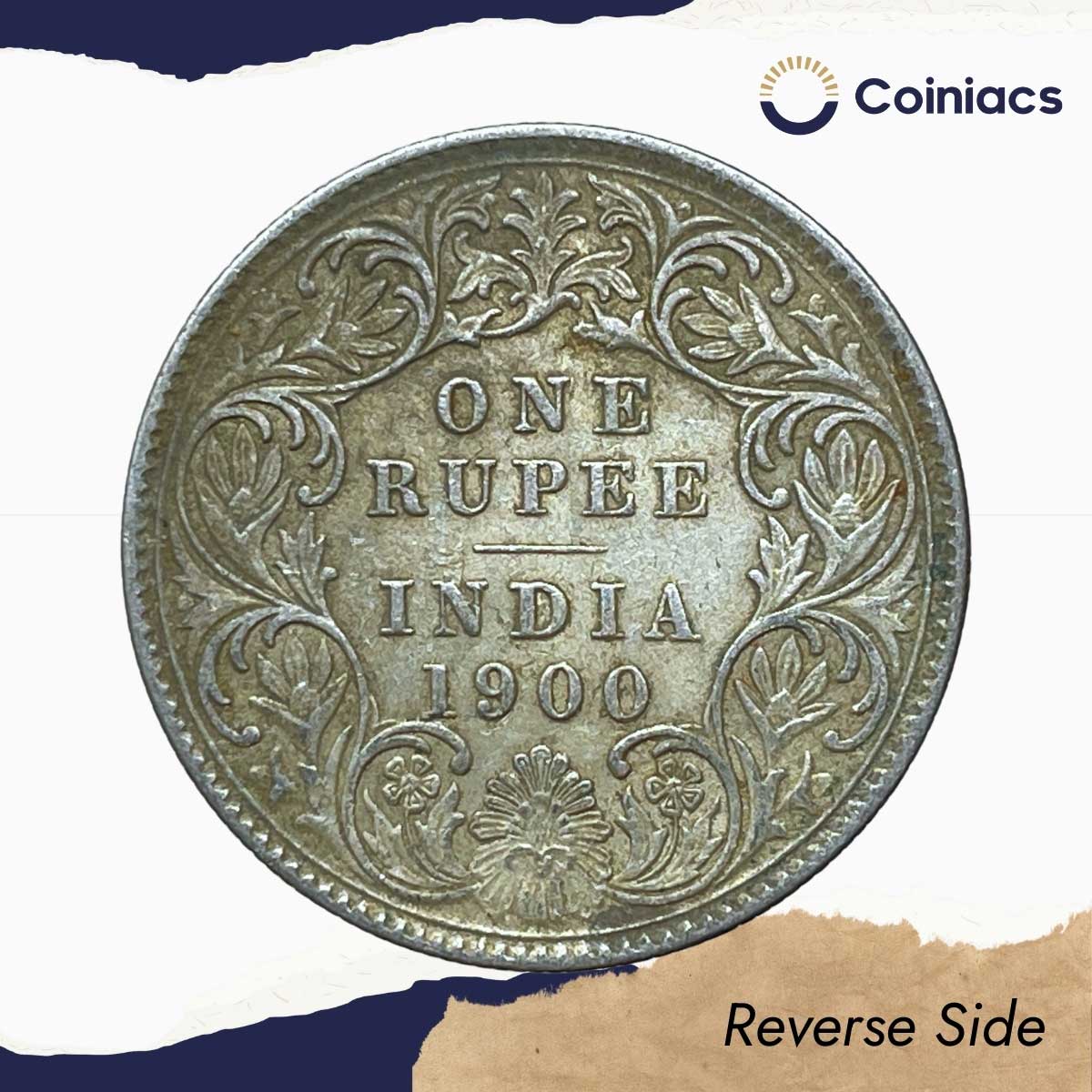 One Rupee Victoria Empress 1900 CE (Obv C3, Rev I(i)) ‘C’ Incused Calcutta Mint Silver Coin, British India Uniform Coinage, Collectible.