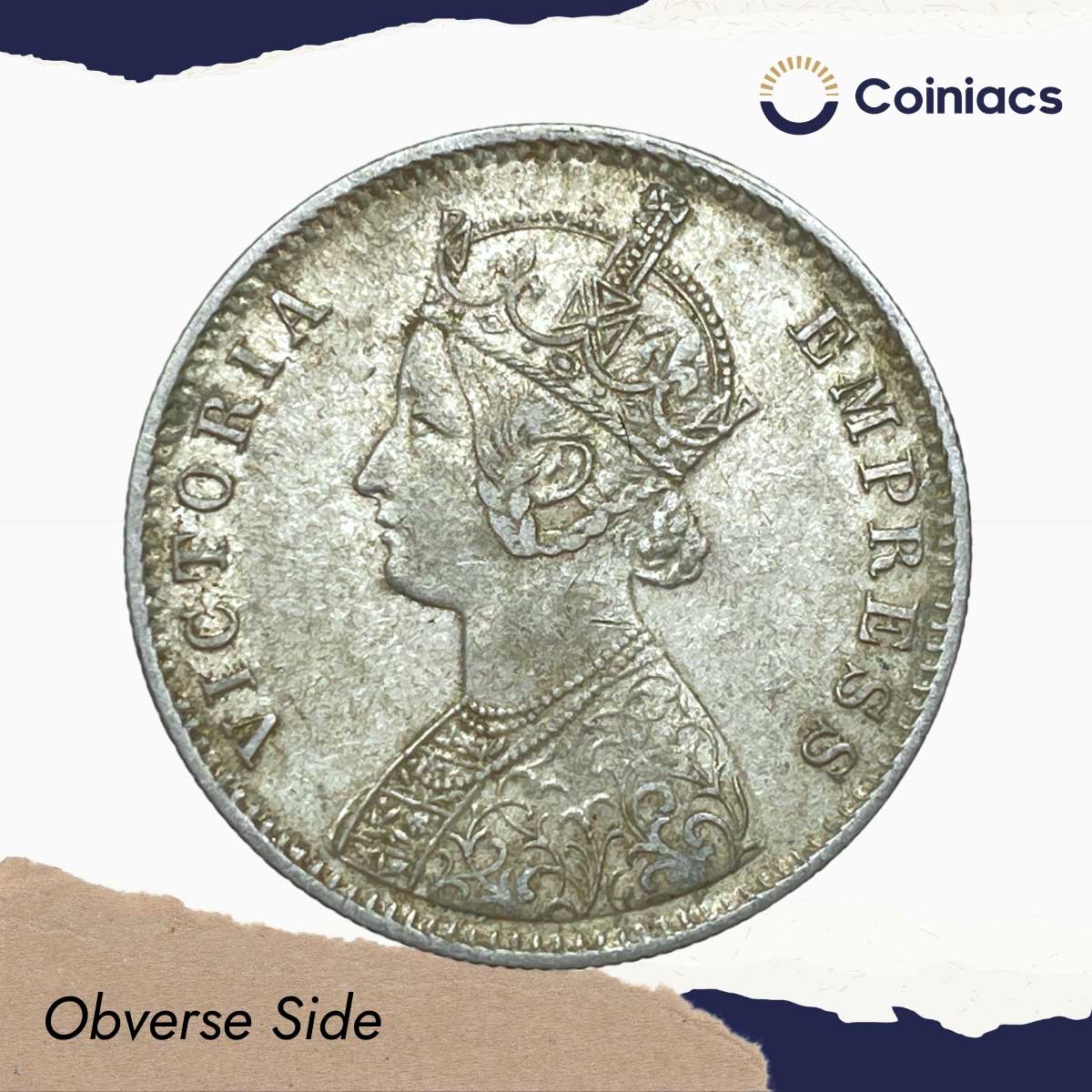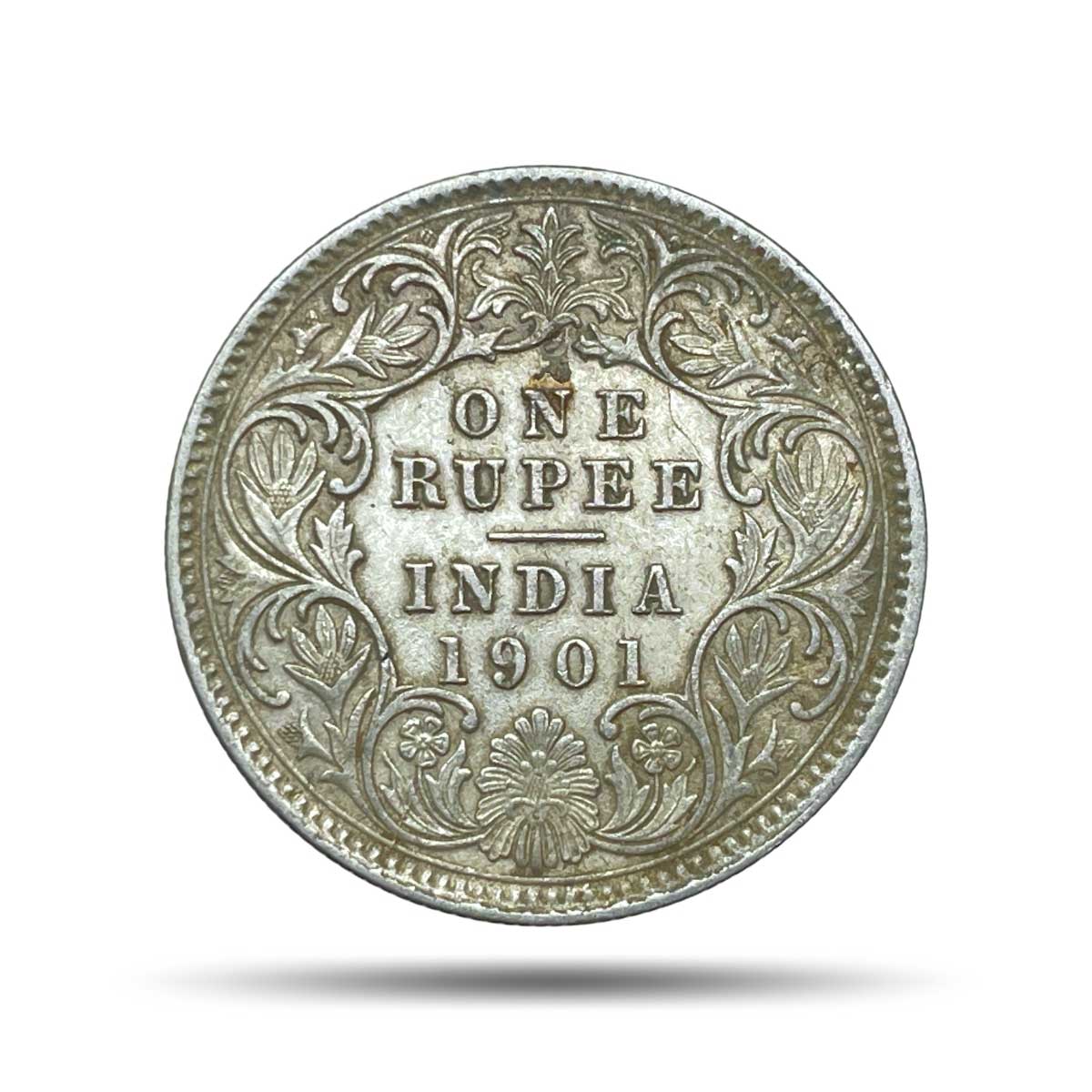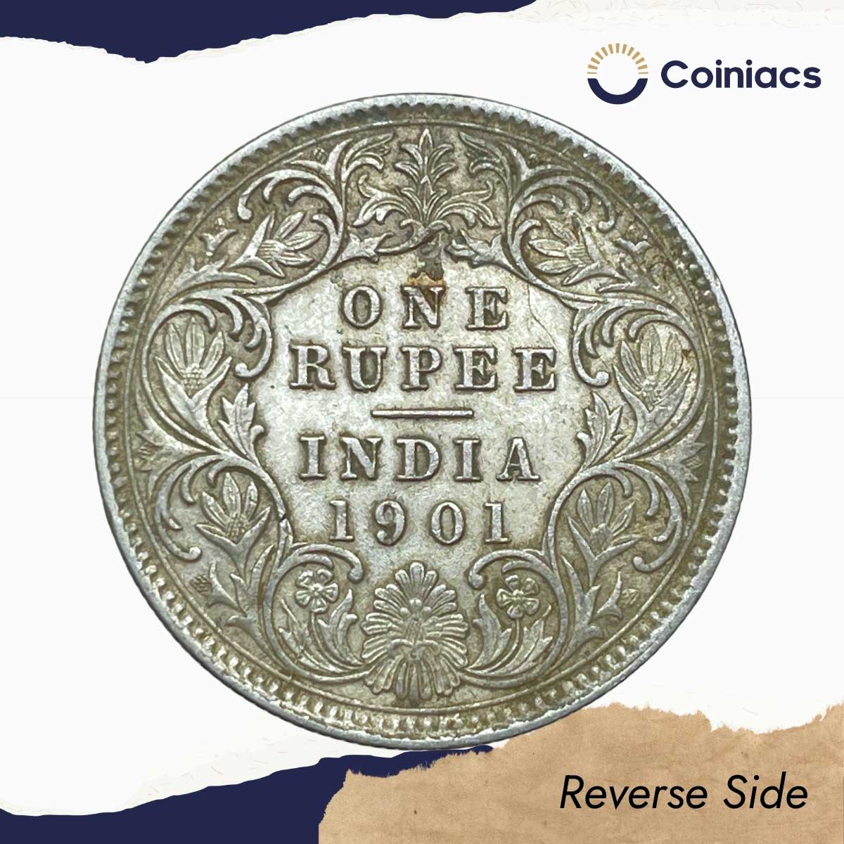 One Rupee Victoria Empress 1901 CE (Obv C3, Rev I(i)) ‘C’ Incused Calcutta Mint Silver Coin, British India Uniform Coinage, Collectible.