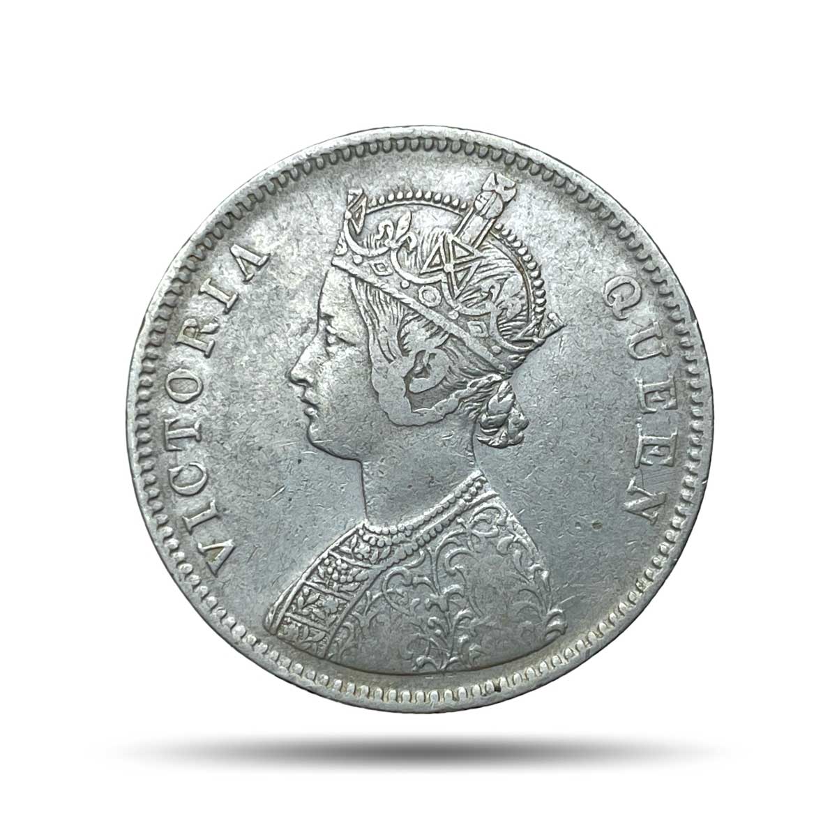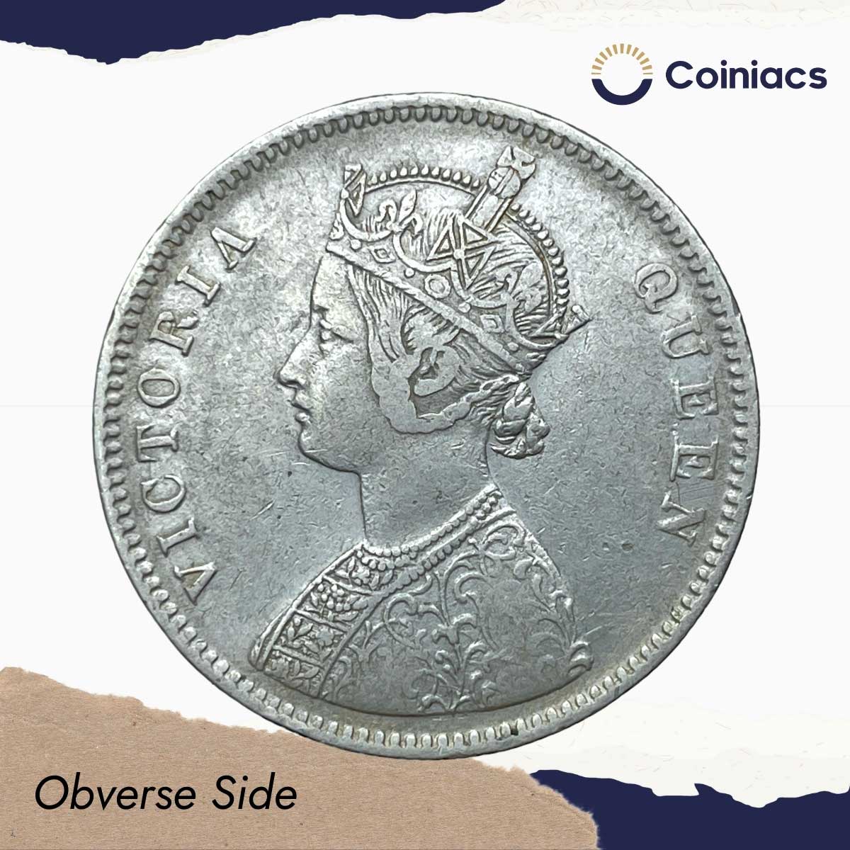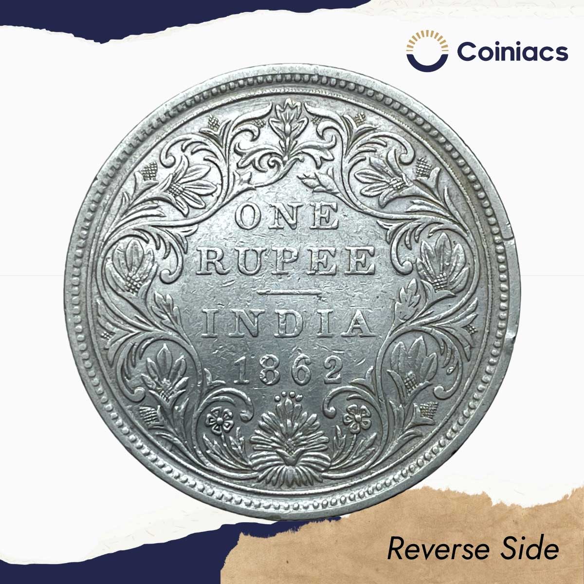 One Rupee Victoria Queen 1862 (4 dots) Silver Coin, British India Uniform Coinage, Collectible.