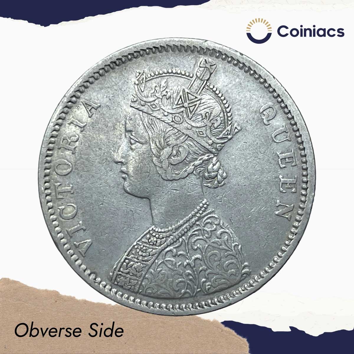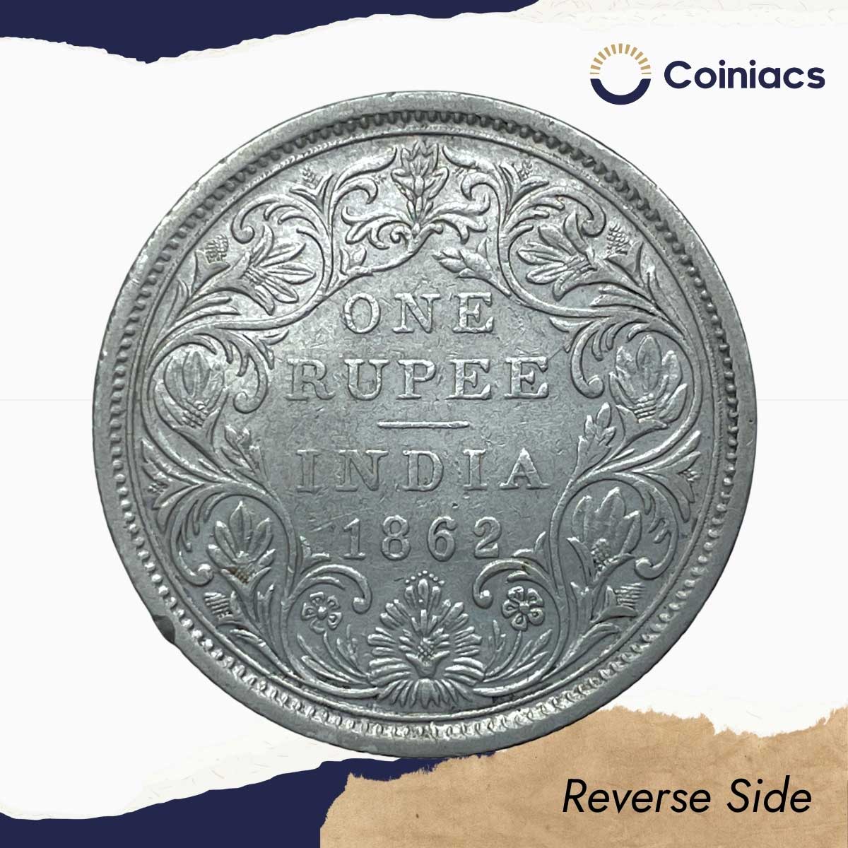 One Rupee Victoria Queen 1862 (7 dots) Silver Coin, British India Uniform Coinage, Collectible.