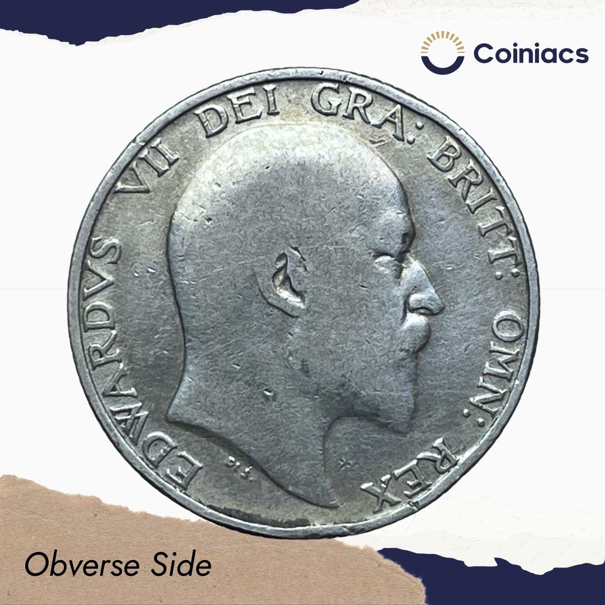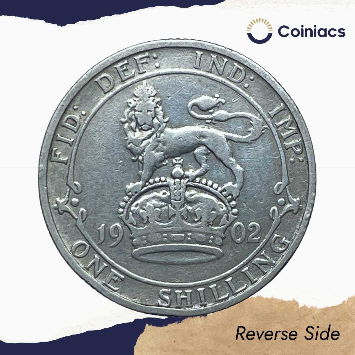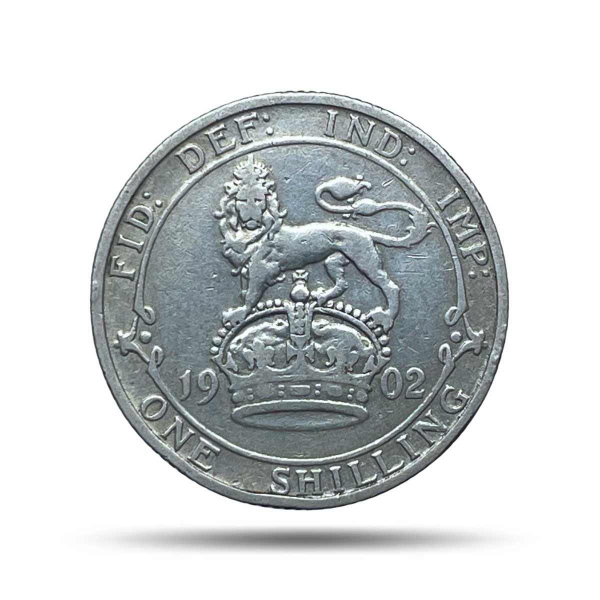 One Shilling Edward VII 1902 CE Royal Mint (Tower Hill) Silver Coin, United Kingdom, Collectible.