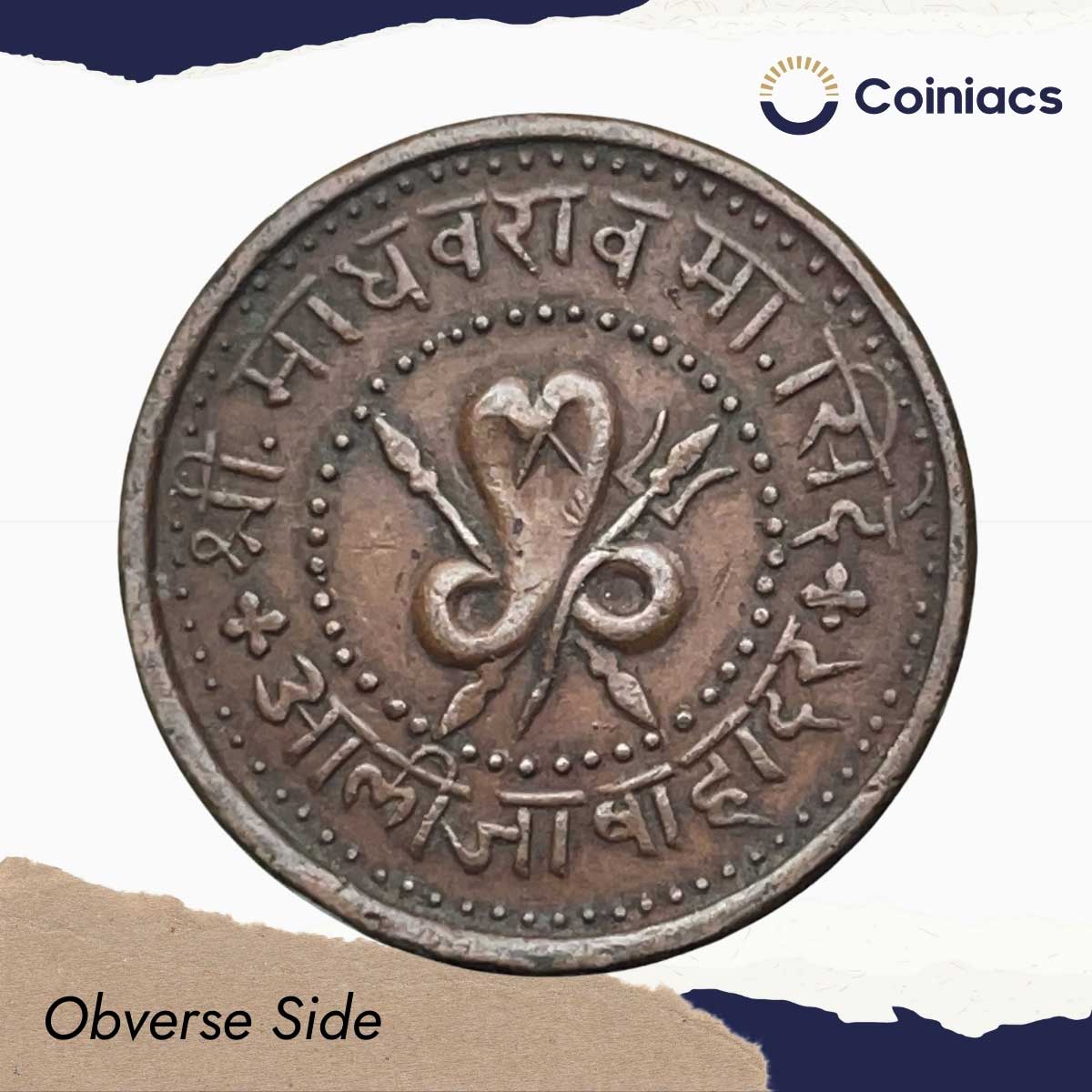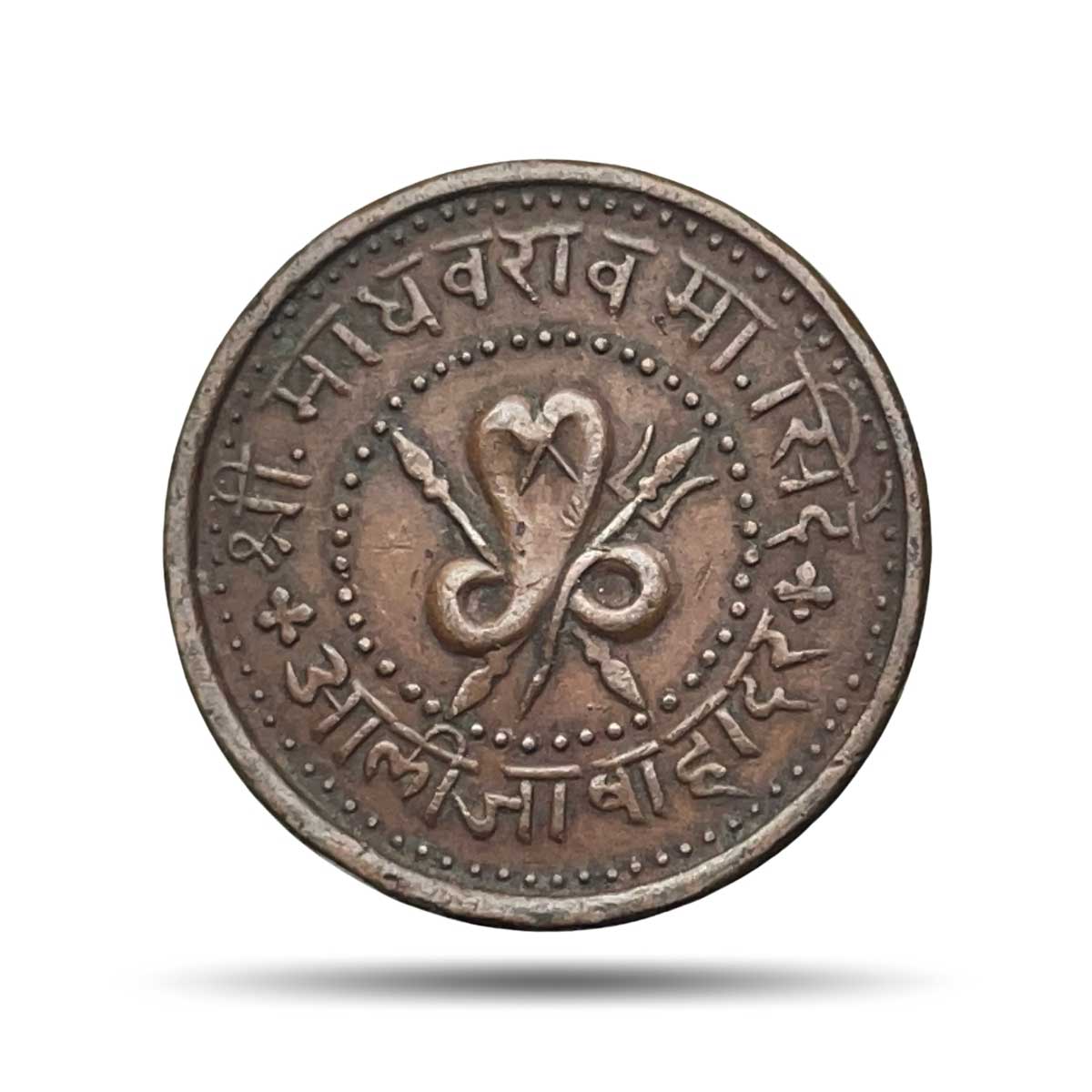 Paw Anna (1/4 Anna) Madho Rao 1957 VS (1900 CE) Copper Coin, Princely State of Gwalior, XF.