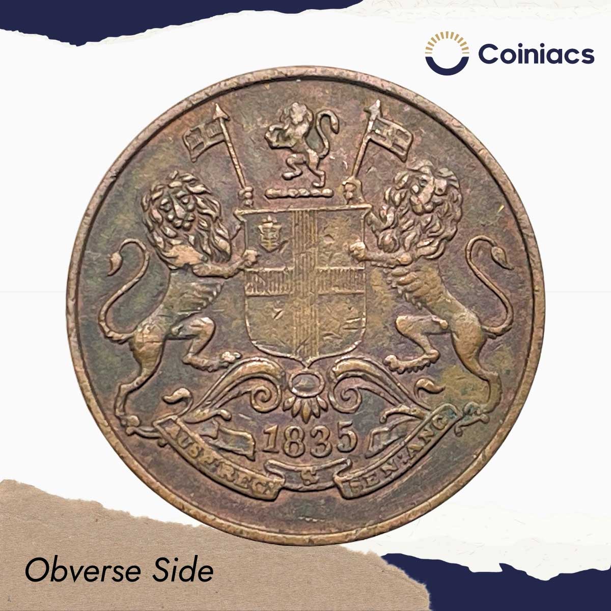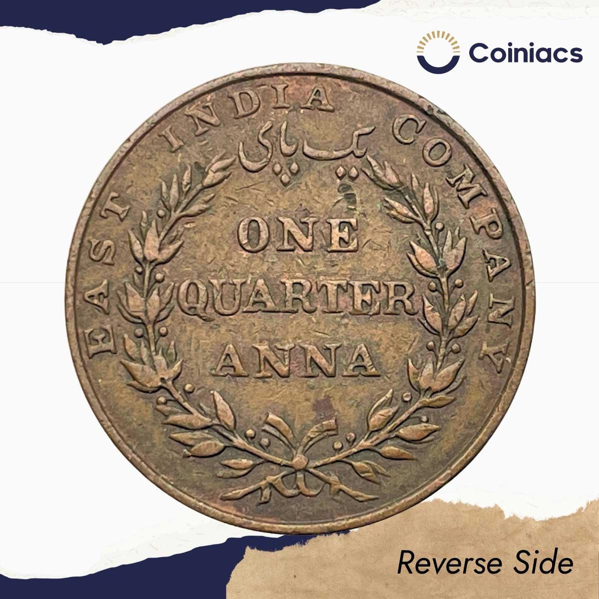 Quarter Anna East India Company 1835 (9L+9R Berries) (Obv A, Rev II) Calcutta Mint Copper Coin, British India Uniform Coinage, Collectible.