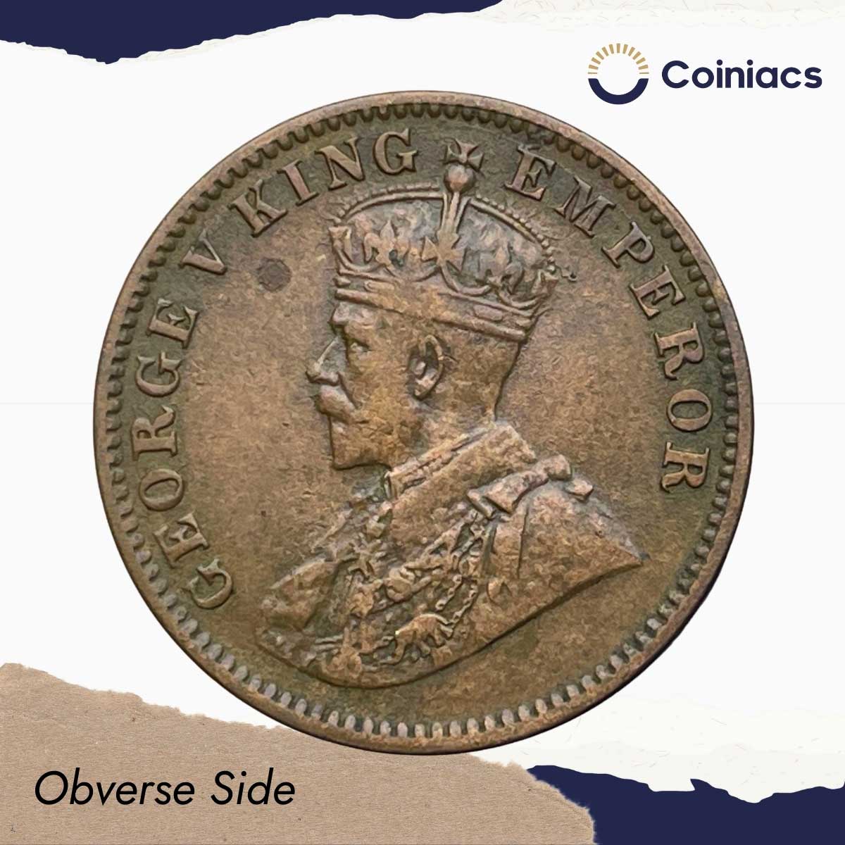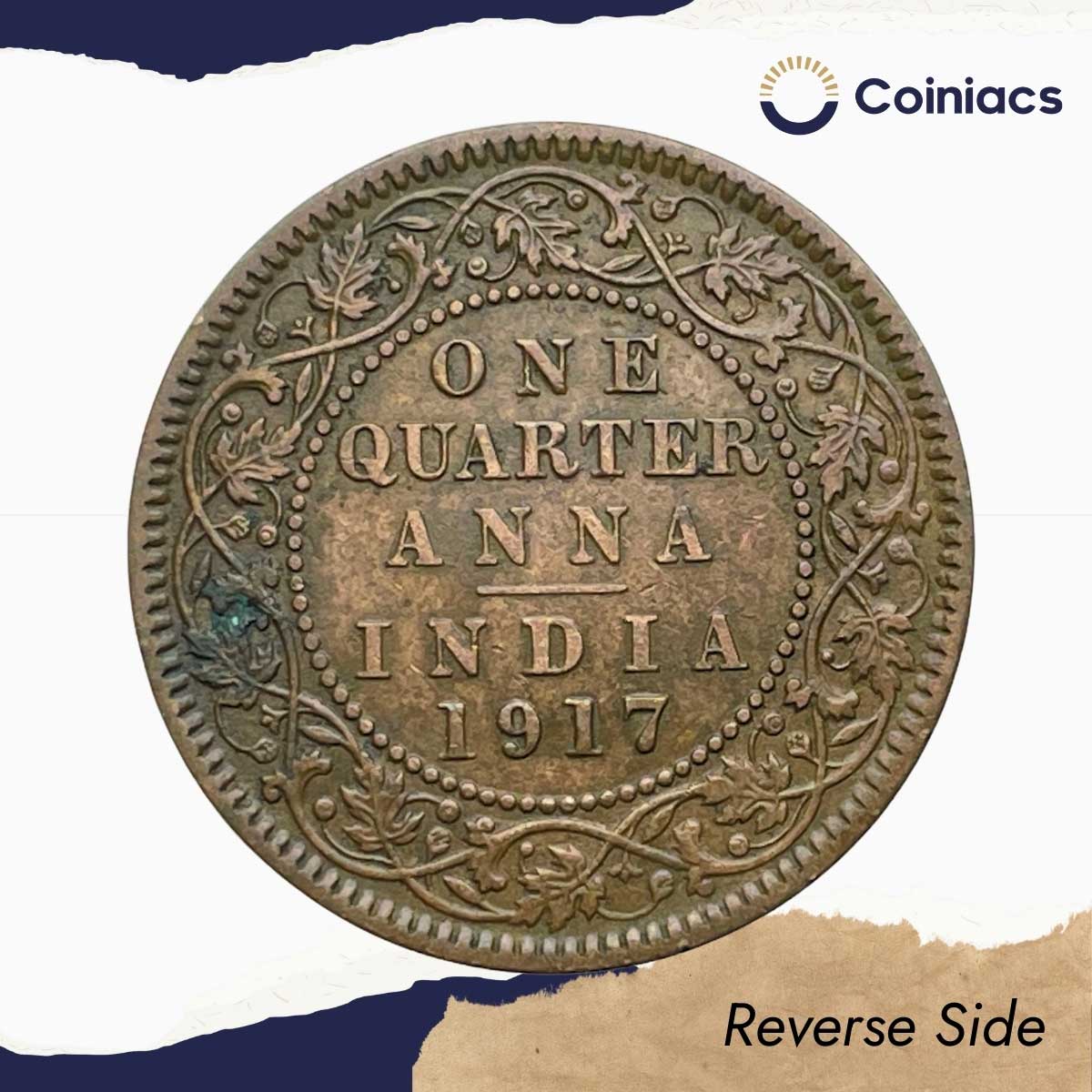 Quarter Anna George V King Emperor 1917 Calcutta Mint Bronze Coin, British India Uniform Coinage, XF.