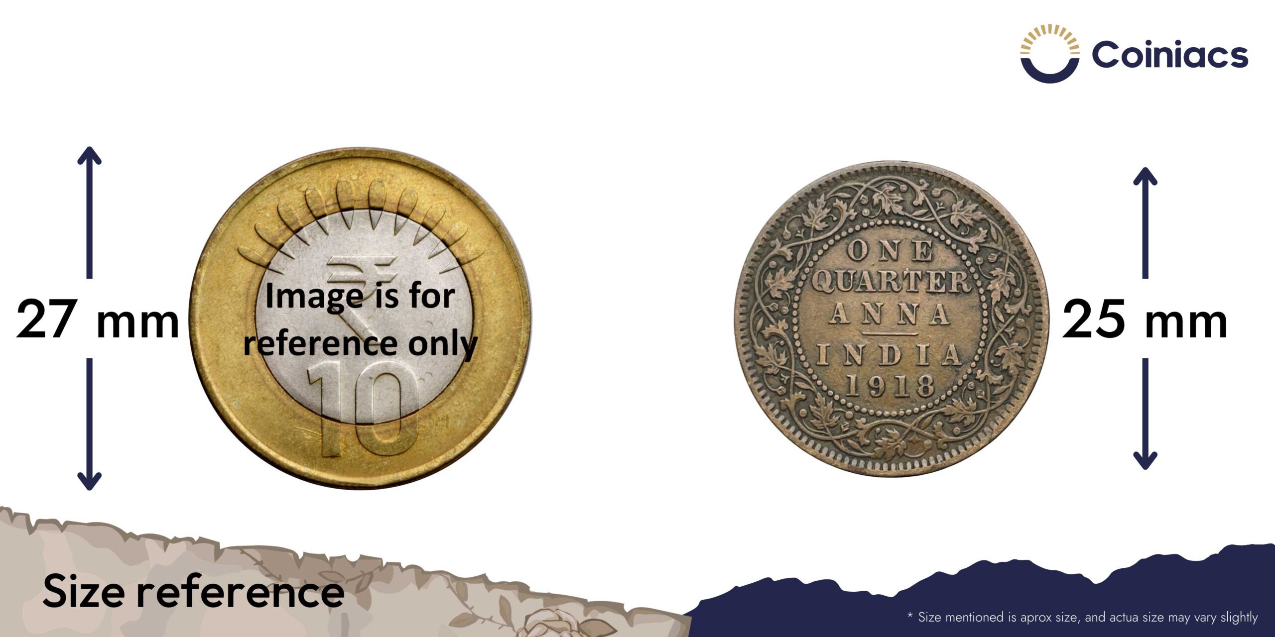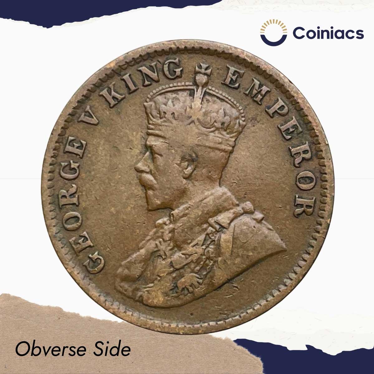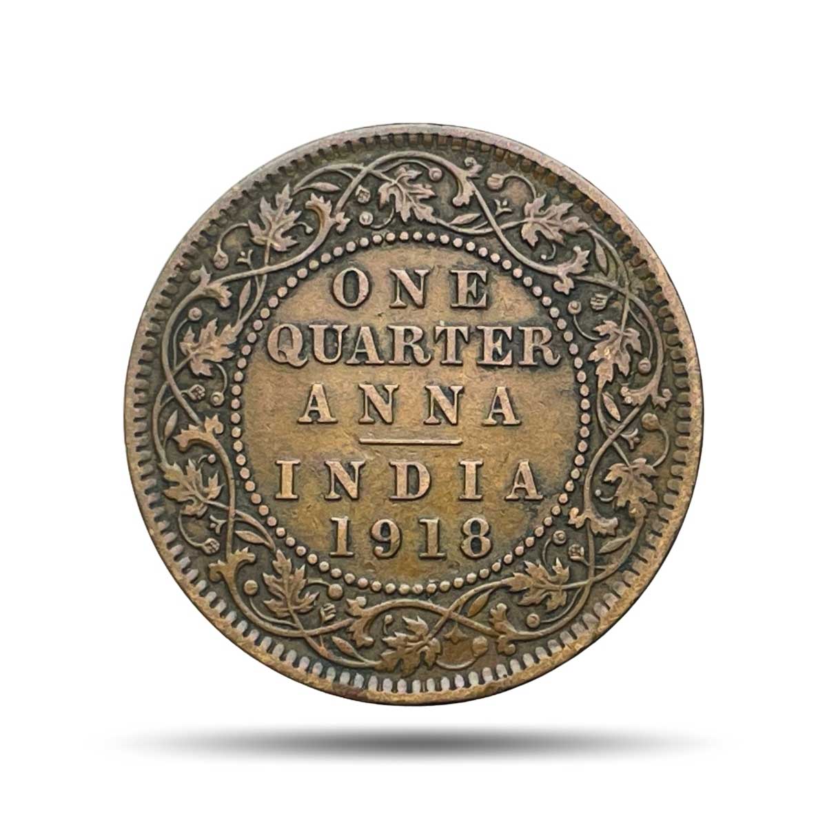 Quarter Anna George V King Emperor 1918 Calcutta Mint Bronze Coin, British India Uniform Coinage, Collectible.