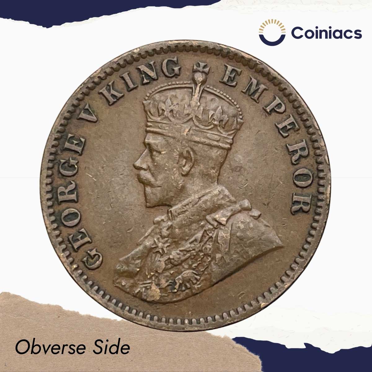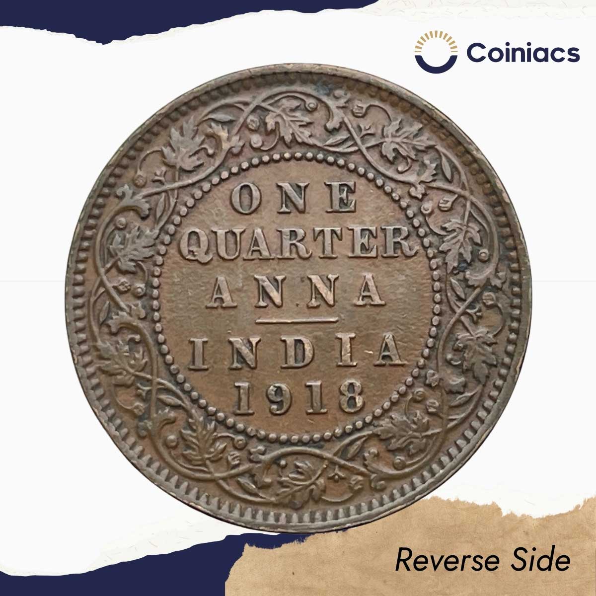 Quarter Anna George V King Emperor 1918 Calcutta Mint Bronze Coin, British India Uniform Coinage, Collectible.