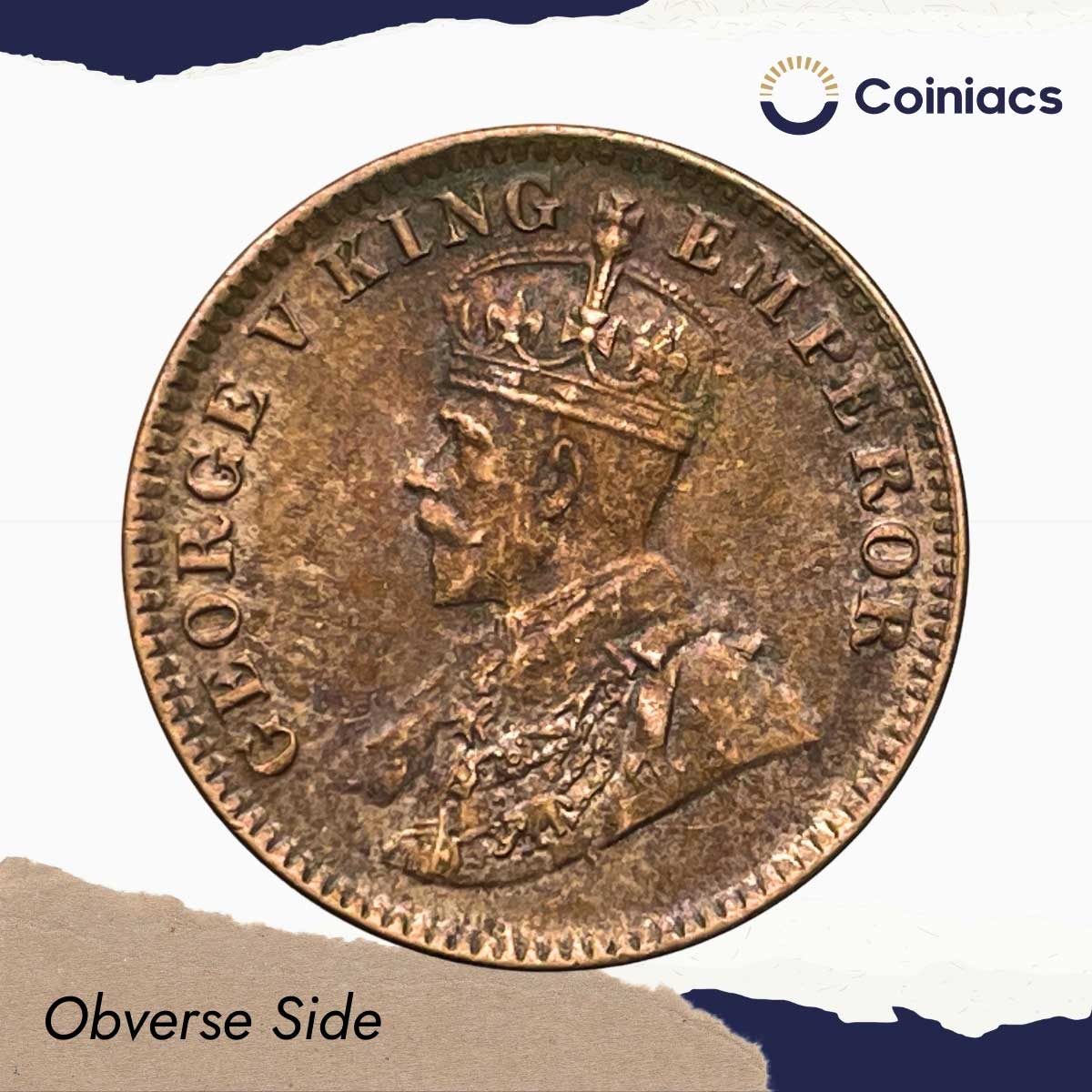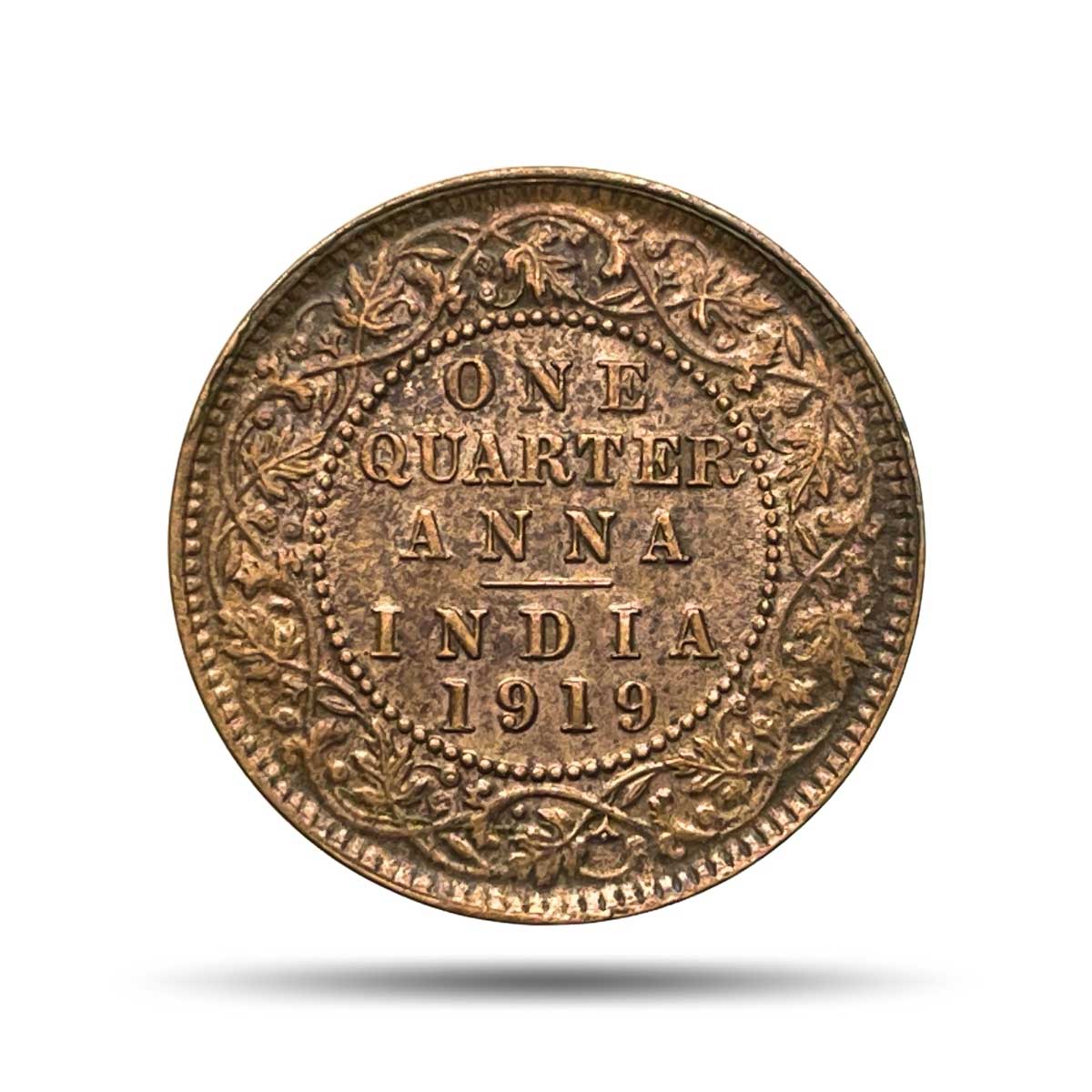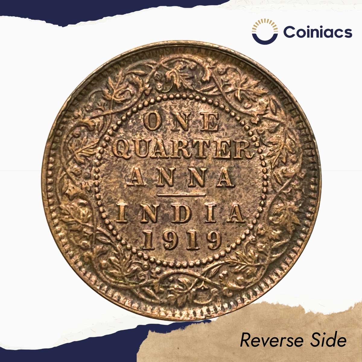 Quarter Anna George V King Emperor 1919 Calcutta Mint Bronze Coin, British India Uniform Coinage, Collectible.