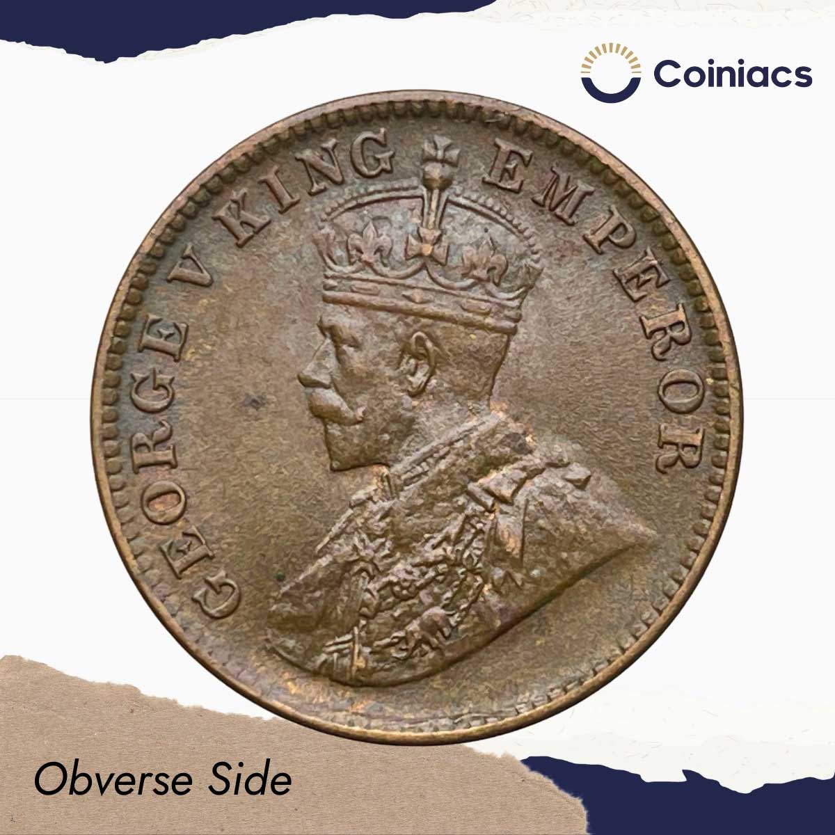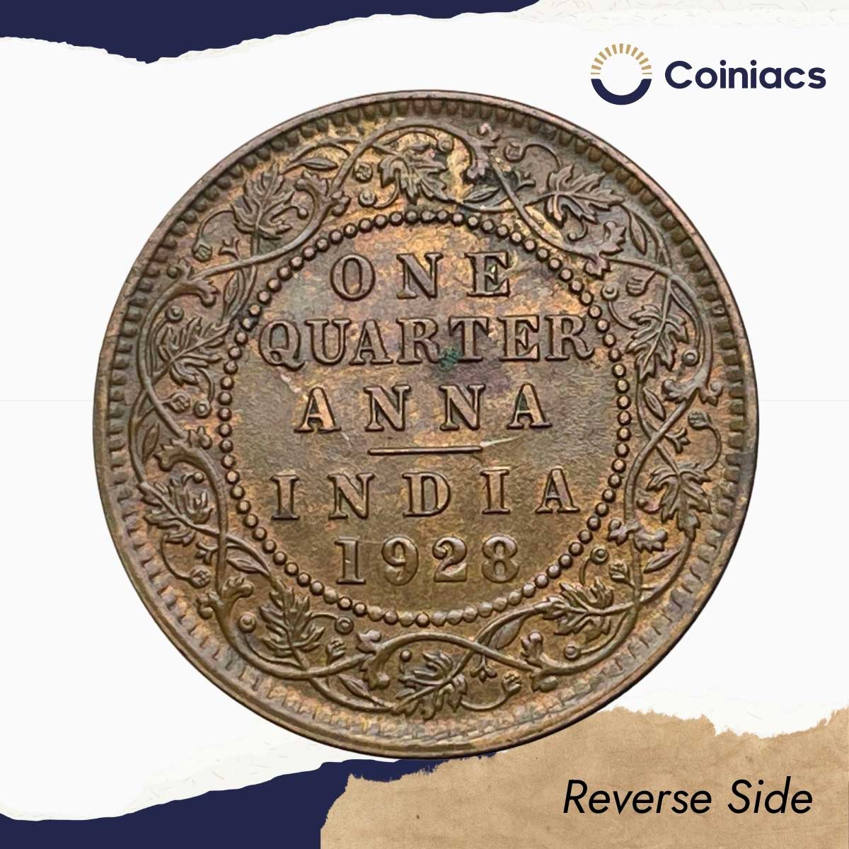 Quarter Anna George V King Emperor 1928 Calcutta Mint Bronze Coin, British India Uniform Coinage, Collectible.
