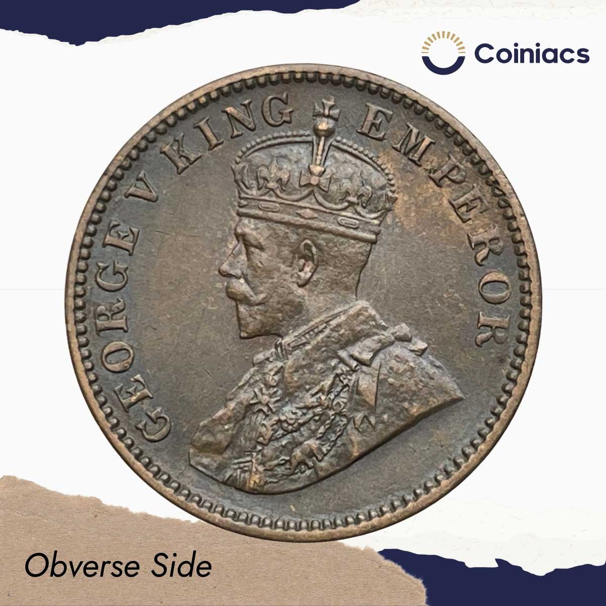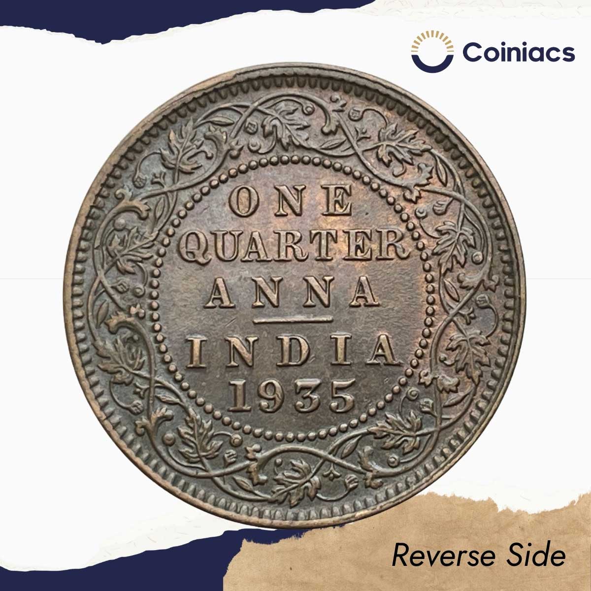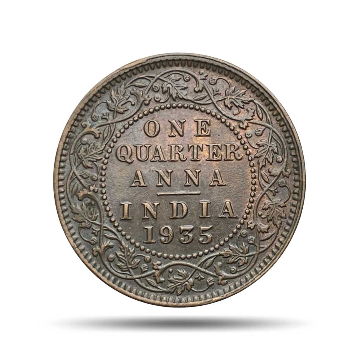 Quarter Anna George V King Emperor 1935 Calcutta Mint Bronze Coin, British India Uniform Coinage, UNC.