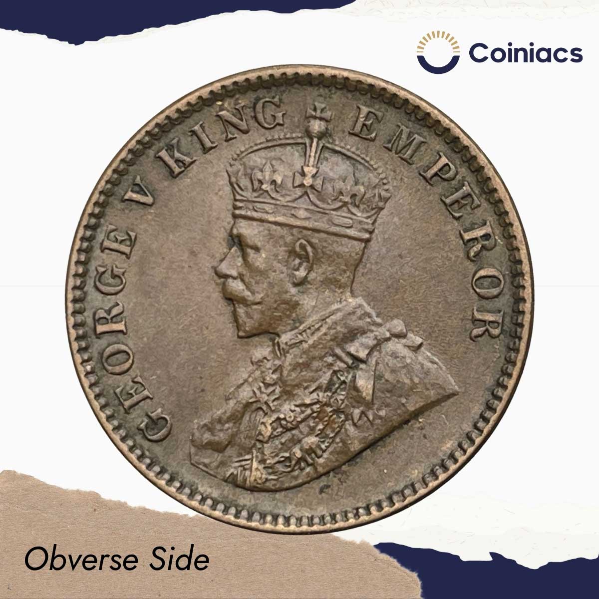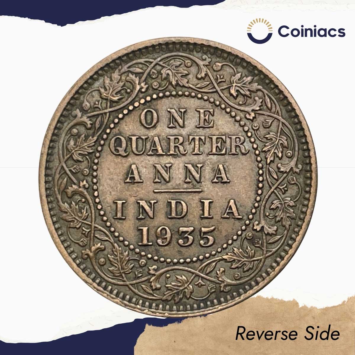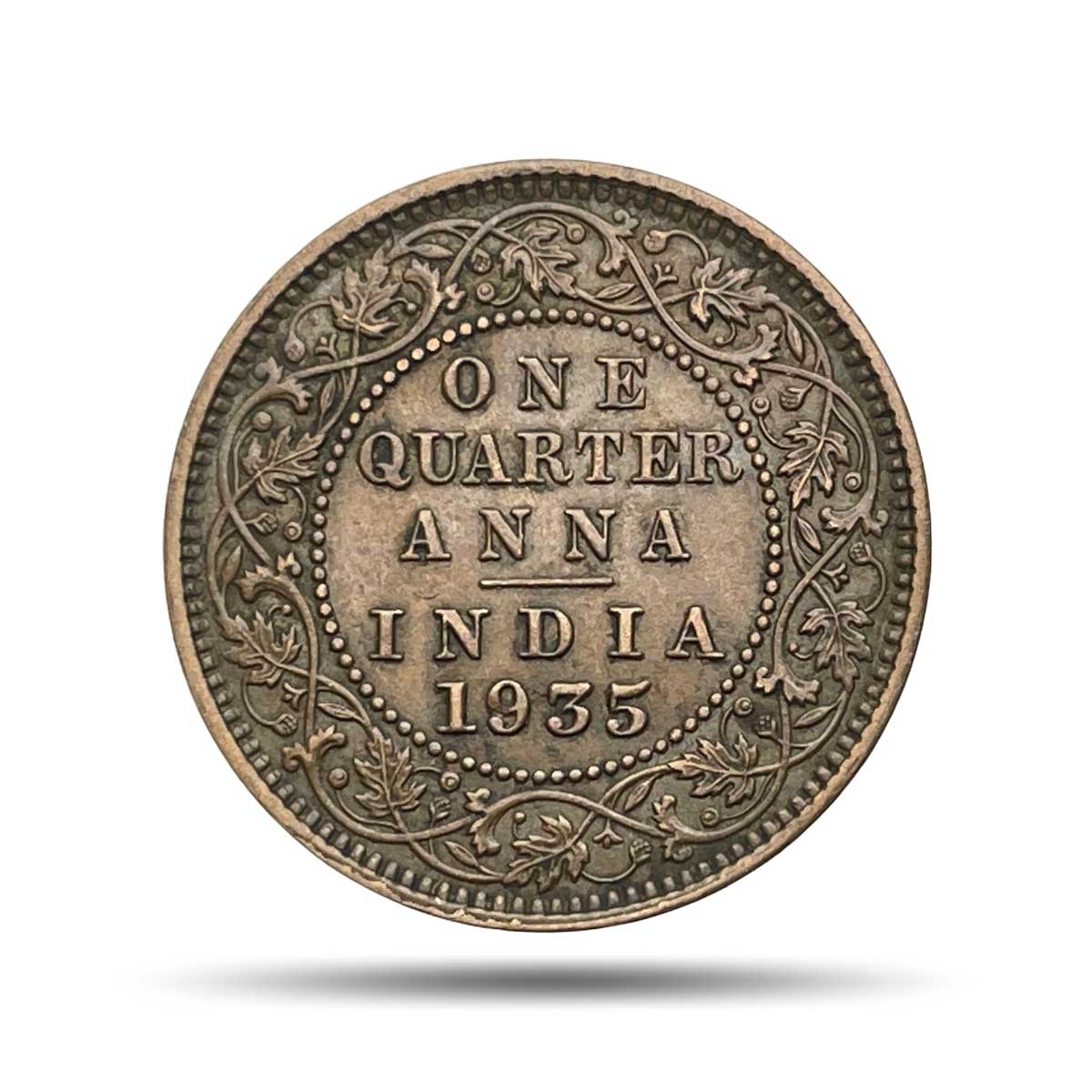 Quarter Anna George V King Emperor 1935 Calcutta Mint Bronze Coin, British India Uniform Coinage, XF+.
