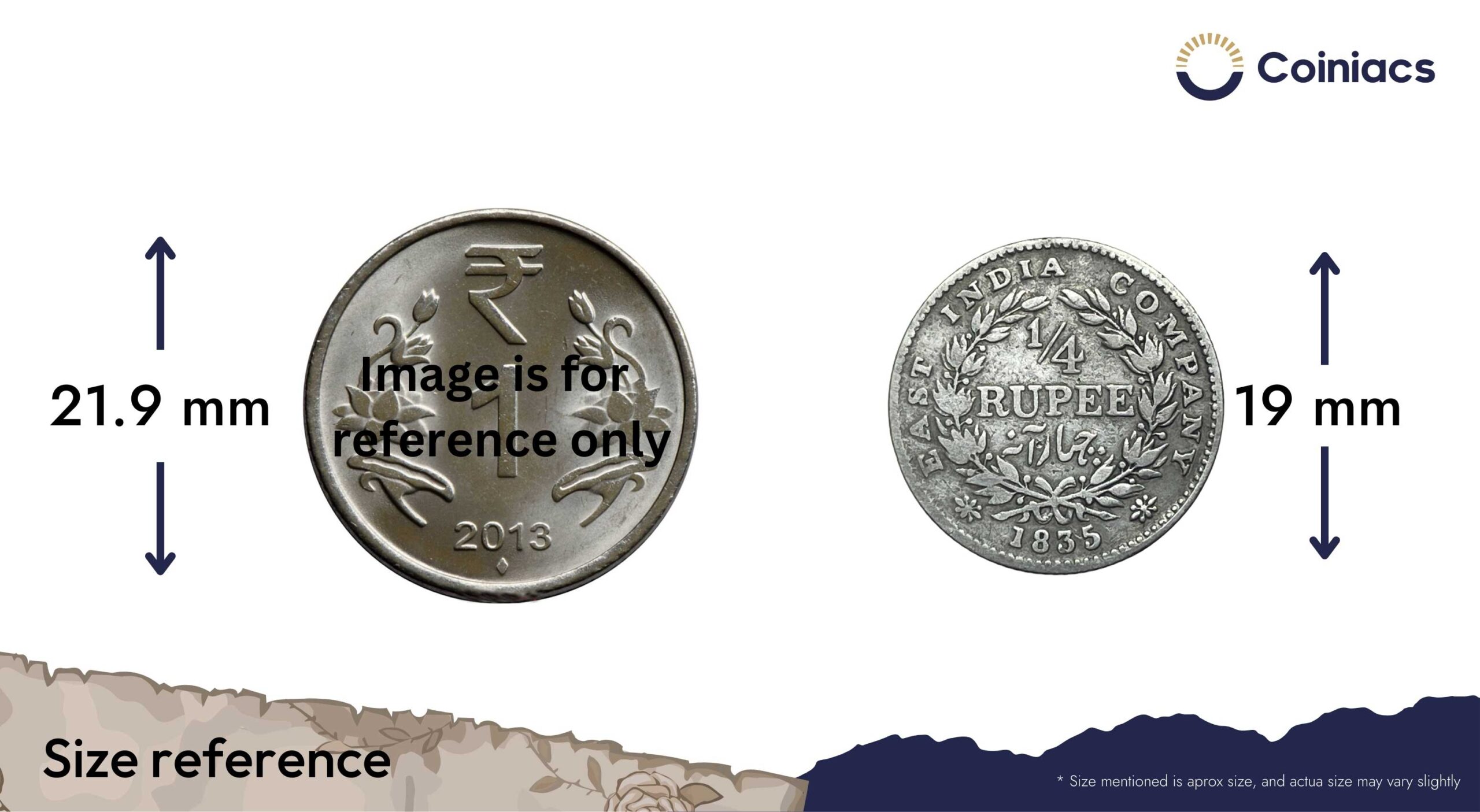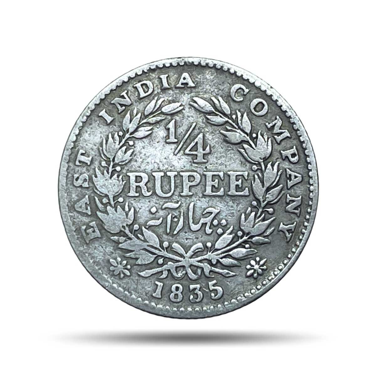 Rare 1/4 Rupee William IIII King 1835 CE ‘F’ Incused (Obv A, Rev II) 19 Berries (10L + 9R ) Silver coin, British India Uniform Coinage, Collectible.