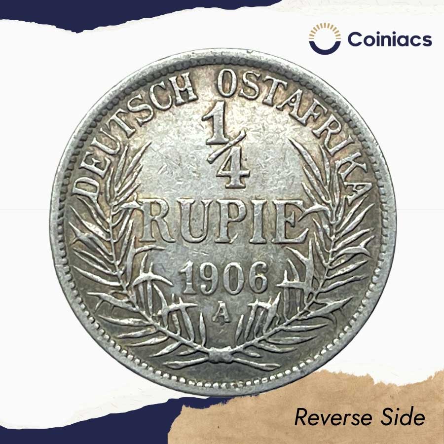 Rare 1/4 Rupie Wilhelm II 1906 CE ‘A’ Berlin Mint Silver Coin, German East Africa, Collectible.