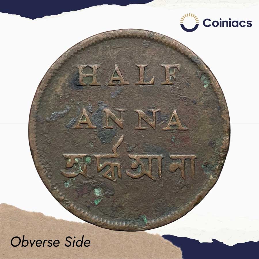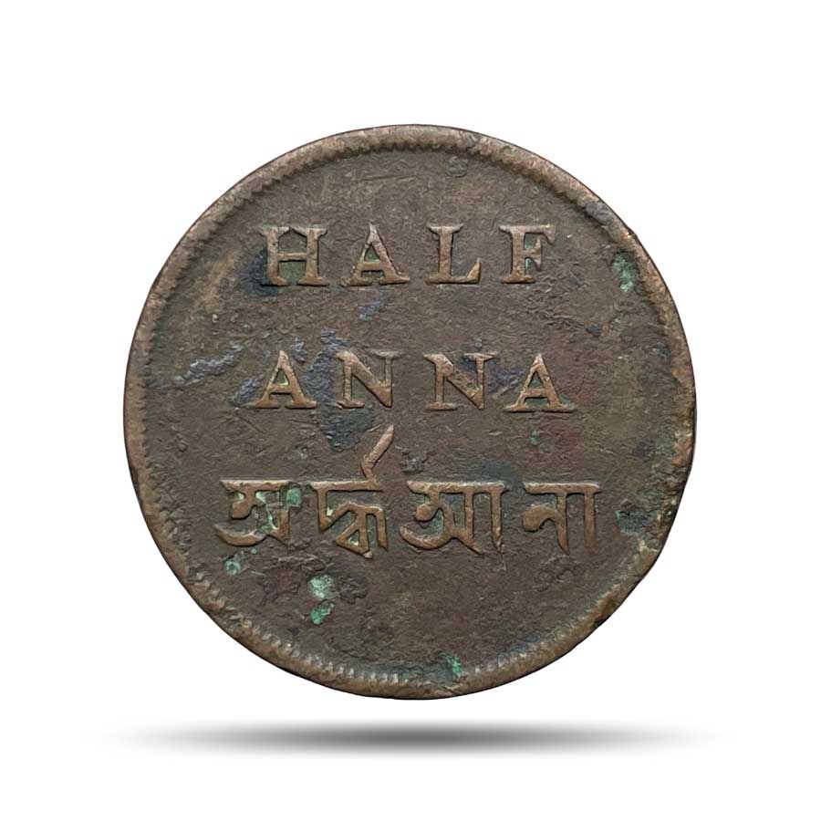 Rare Half Anna (1831-1835 CE) Calcutta Mint (Steam Machine Driven) Copper Coin, Bengal Presidency, Fine.