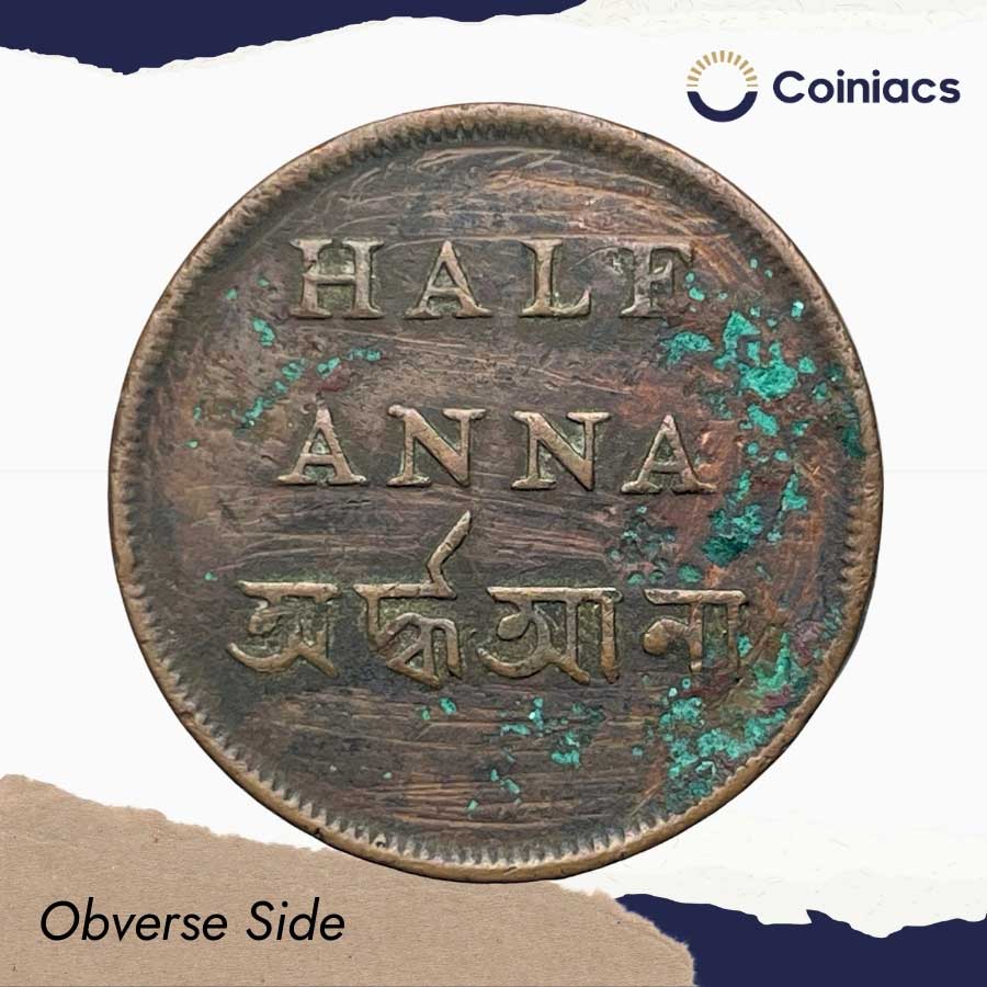 Rare Half Anna (1831-1835 CE) Calcutta Mint (Steam Machine Driven) Copper Coin, Bengal Presidency, Fine.