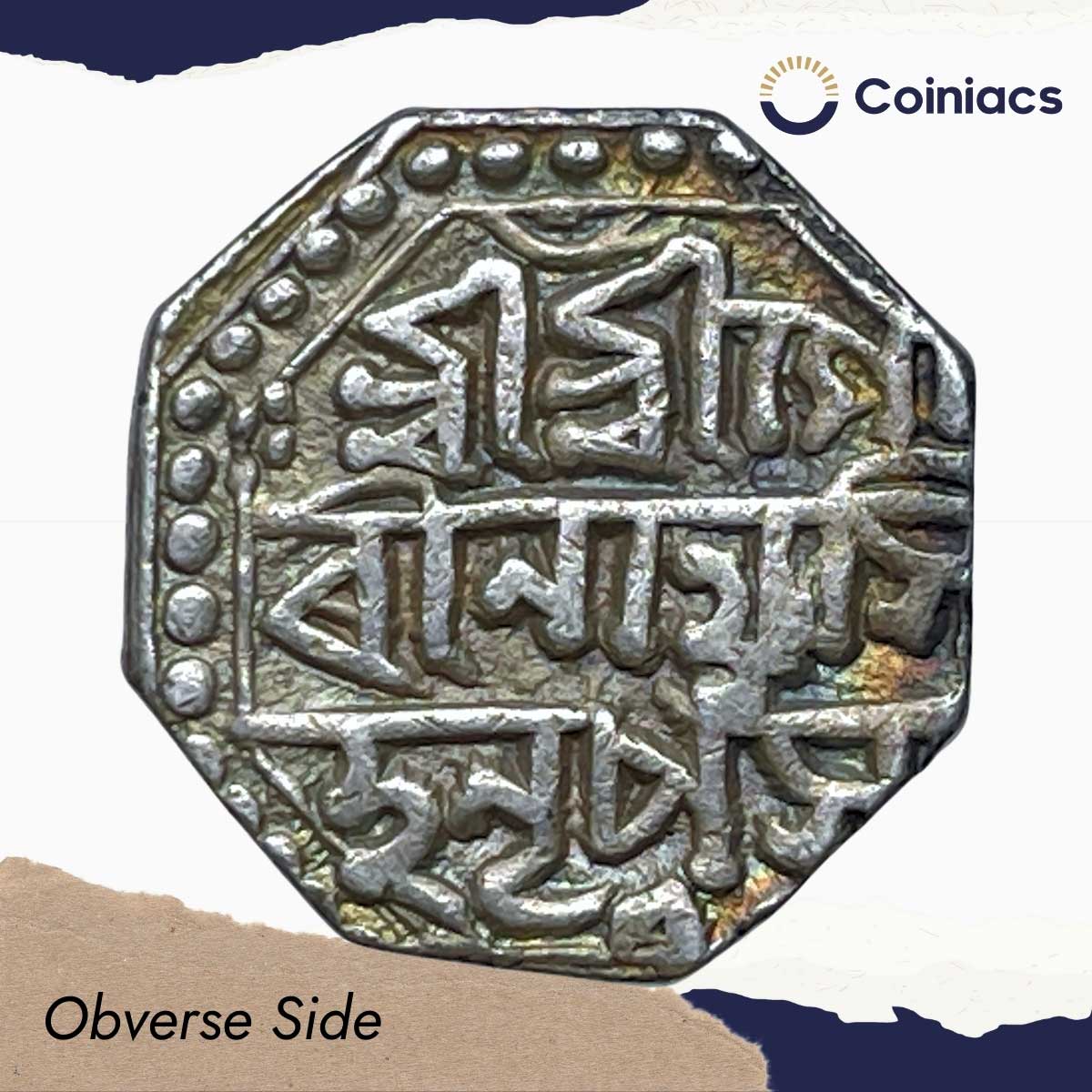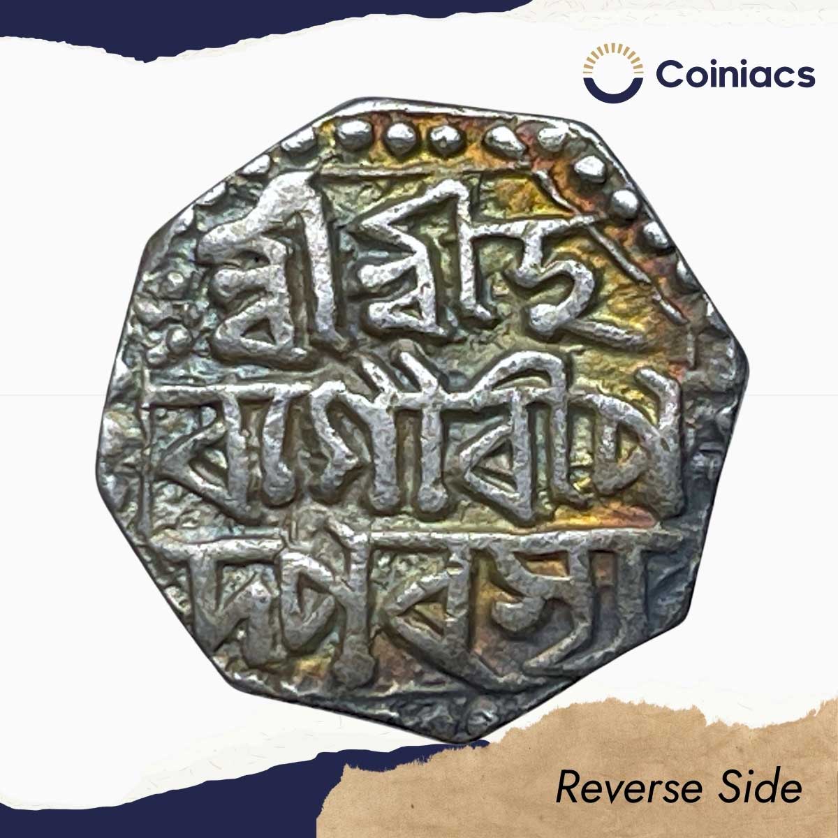 Rare Half Rupee Gaurinatha Simha (Suhitpanpha) (Reign 1780-1796 CE) Silver Coin, Ahom Kingdom of Assam, XF.