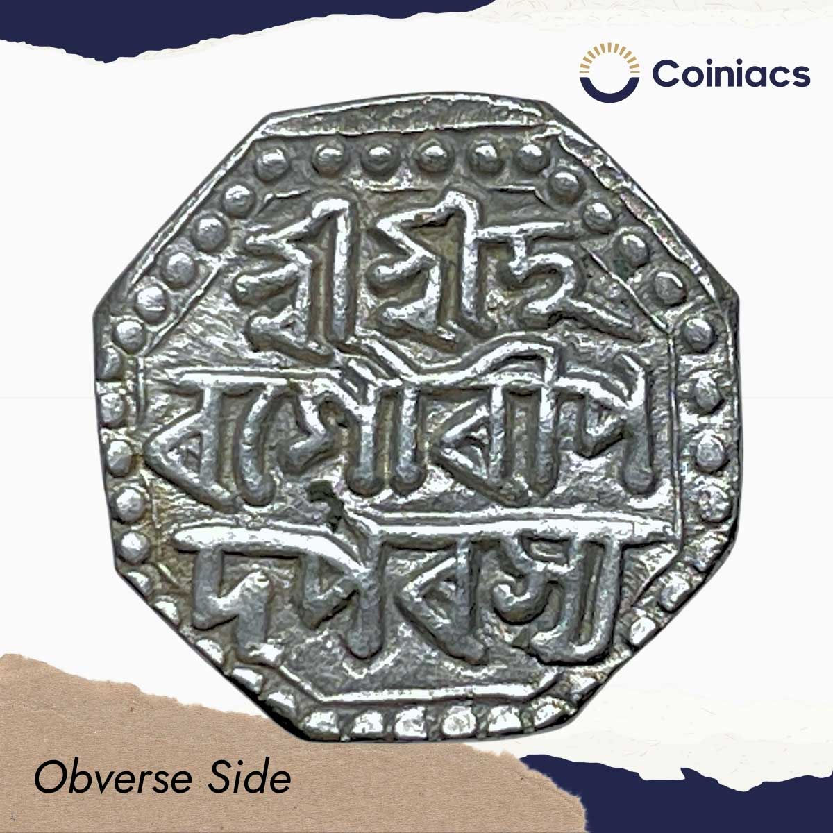 Rare Half Rupee Lakshmi Simha “Hari Gauri” (Sunyeopha) (Reign 1769-1780) Silver Coin, Ahom Kingdom of Assam, XF.