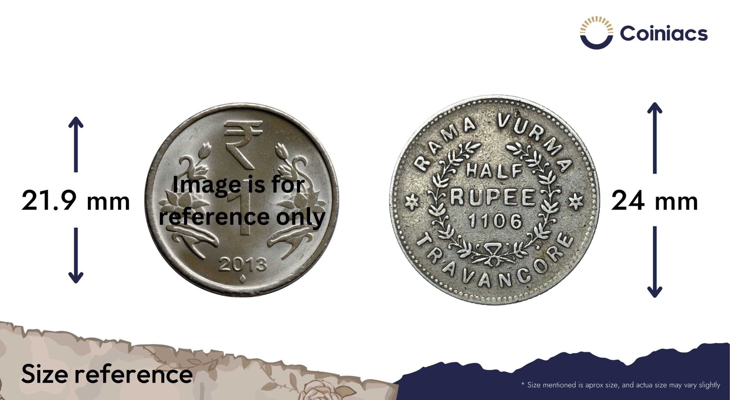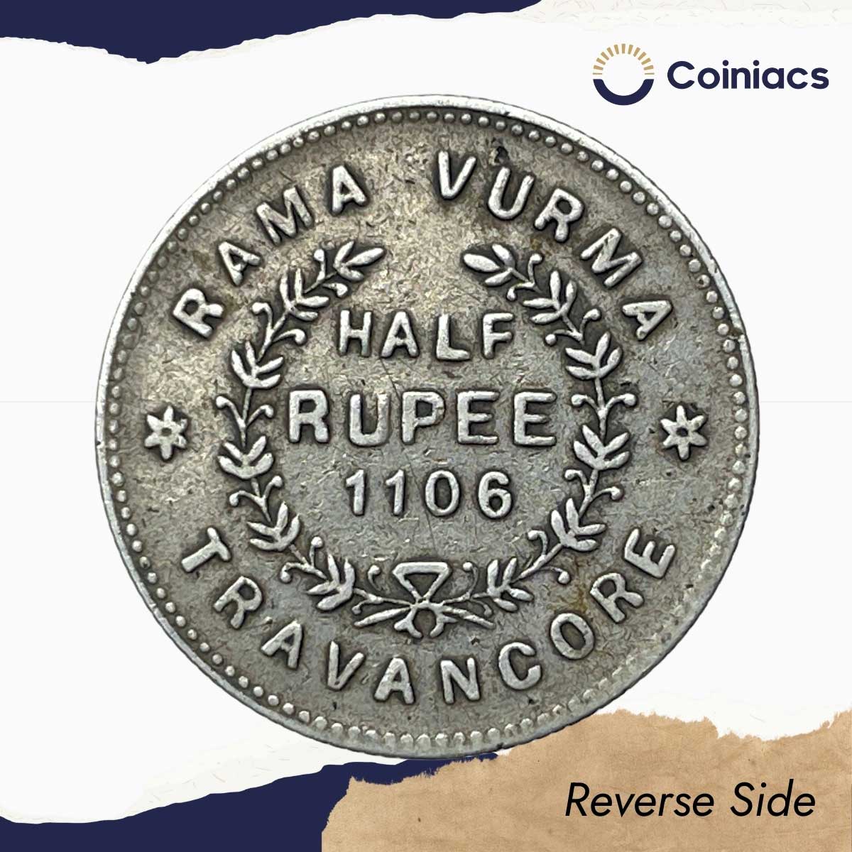 Rare Half Rupee Pooradam Thirunal Sethu Lakshmi Bayi 1106 Kollam Era (1931 CE) Silver Coin, Princely State of Travancore, XF.