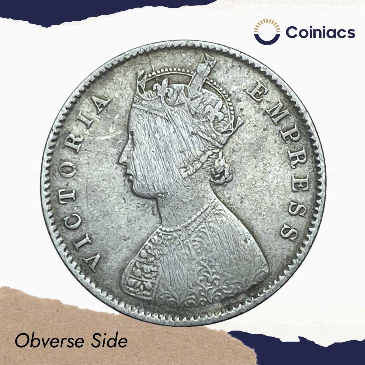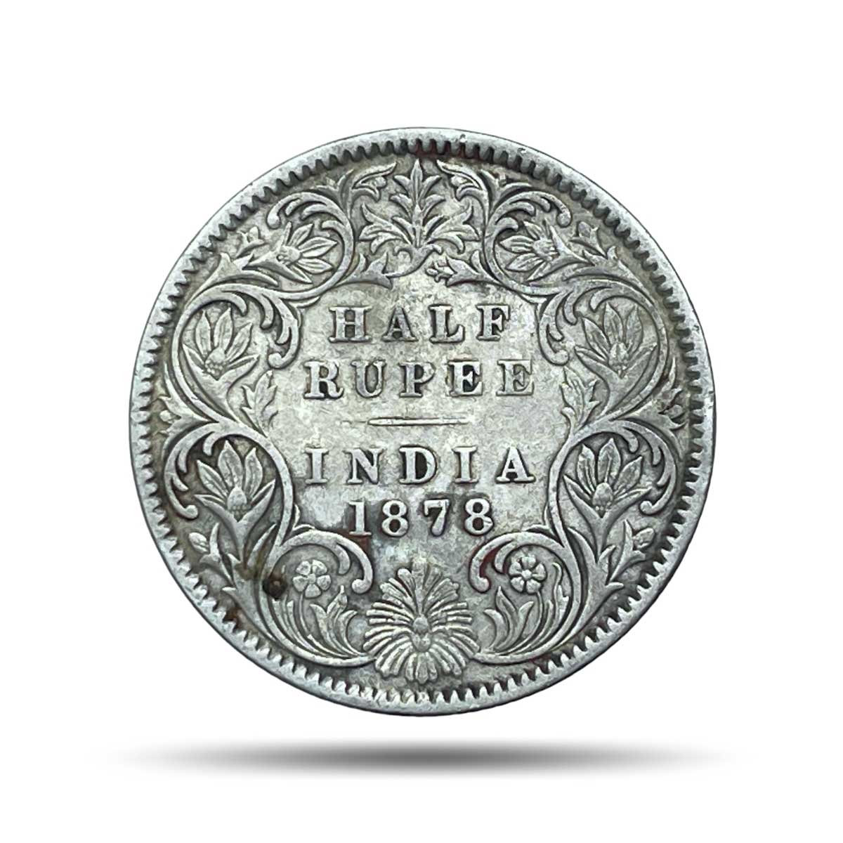 Rare Half Rupee Victoria Empress 1878 (Key Date) Calcutta Mint (Obv A, Rev I) Silver Coin, British India Uniform Coinage, Collectible.