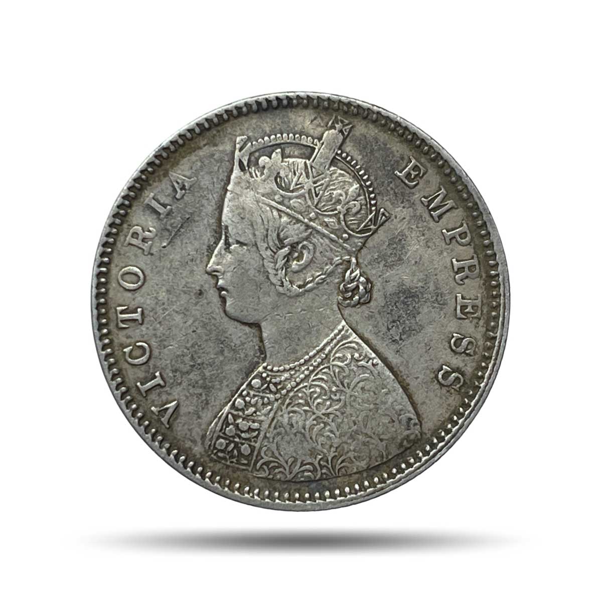 Rare Half Rupee Victoria Empress 1885 (Key Date) Bombay Mint ‘B’ Raised ( Obv-A, Rev-II(i) ) Silver Coin, British India Uniform Coinage, Collectible.