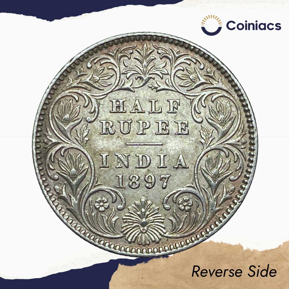 Rare Half Rupee Victoria Empress 1897 Calcutta Mint ‘C’ incuse (Obv-A, Rev-I) Silver Coin, British India Uniform Coinage, Collectible.