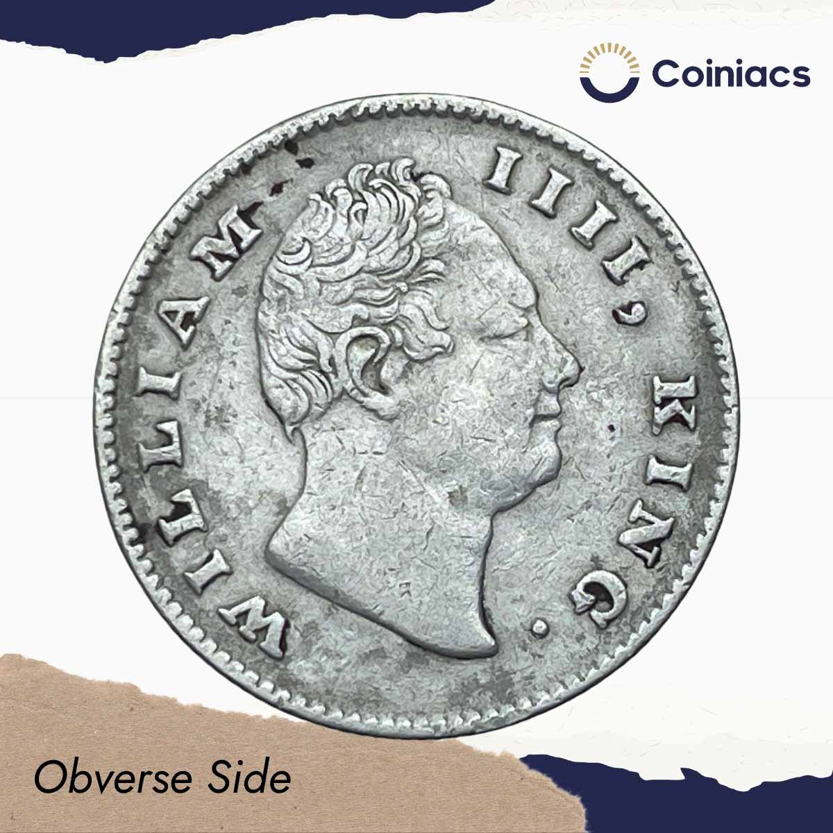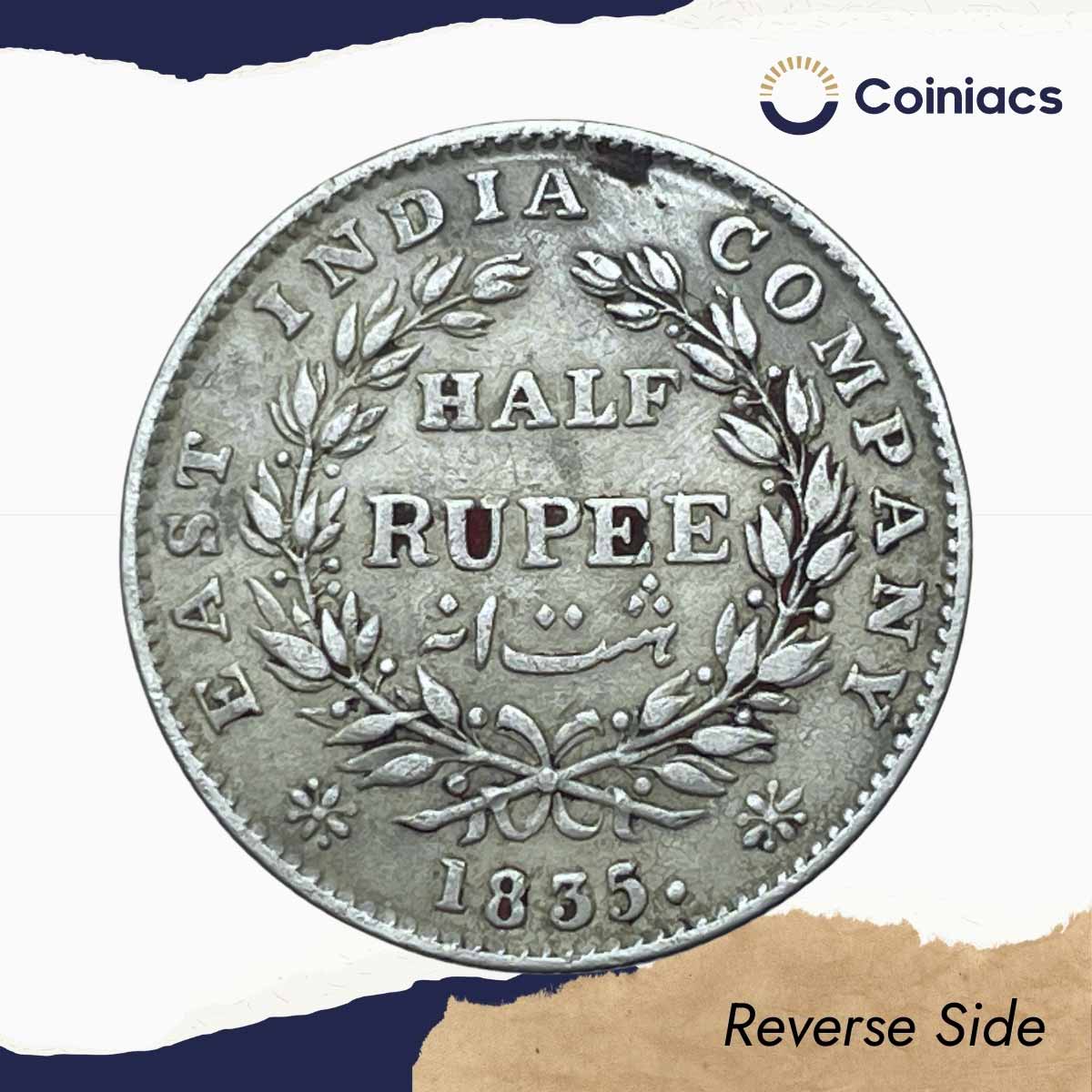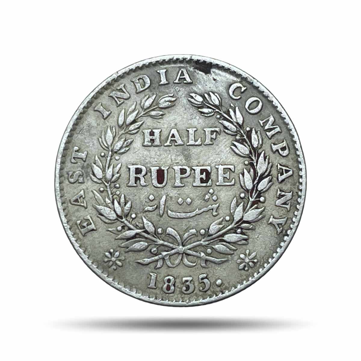 Rare Half Rupee William IIII King 1835 CE (Obv A, Rev II) 19 Berries Silver coin, British India Uniform Coinage, Collectible.