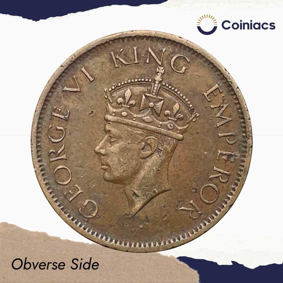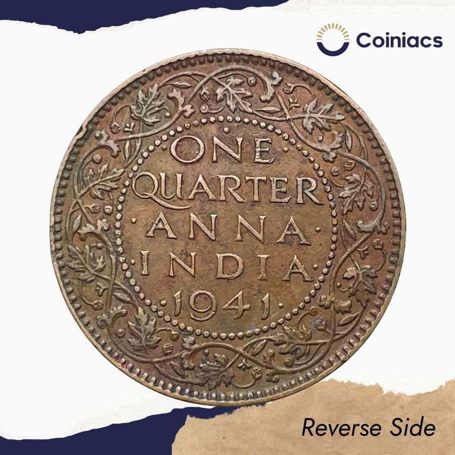 Rare One Quarter Anna George VI King Emperor 1941 Bombay Mint (Key Date & Mint) Bronze Coin, British India Uniform Coinage, Collectible.