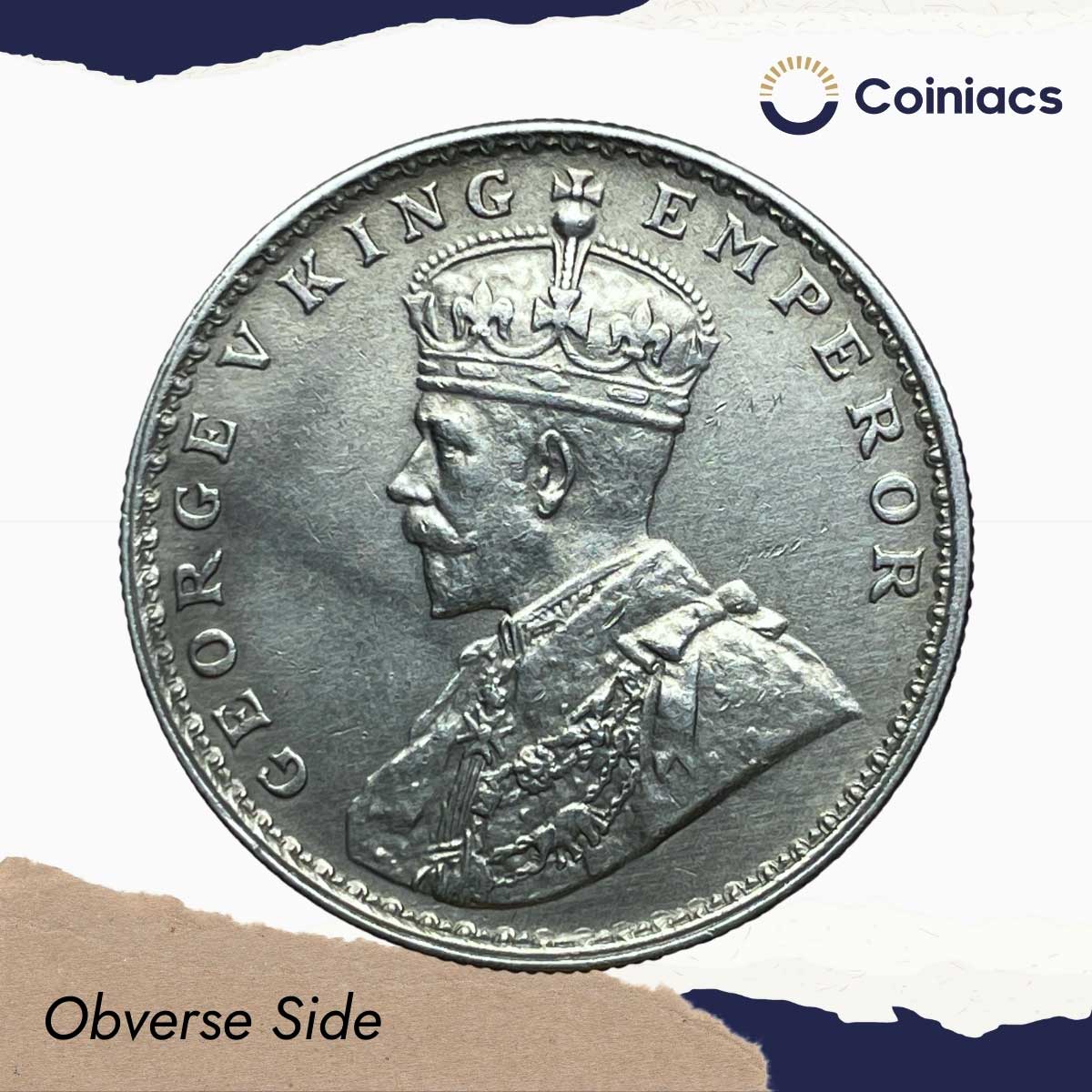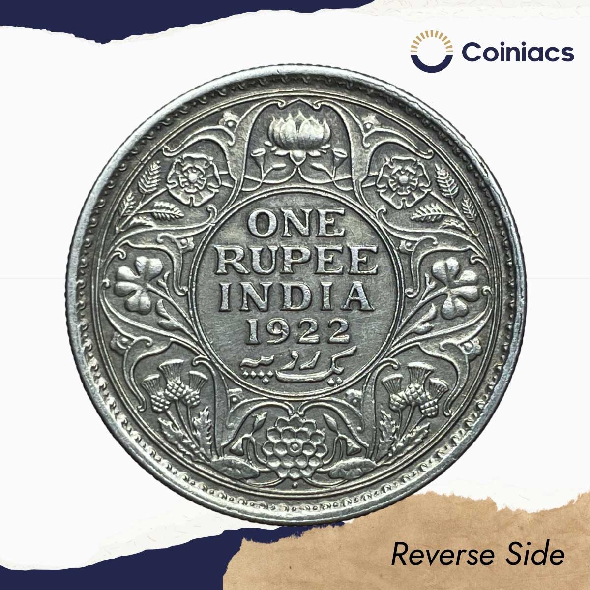 Rare One Rupee George V 1922 CE (Key Date) Bombay Mint Silver coin, British India Uniform Coinage, AUNC.