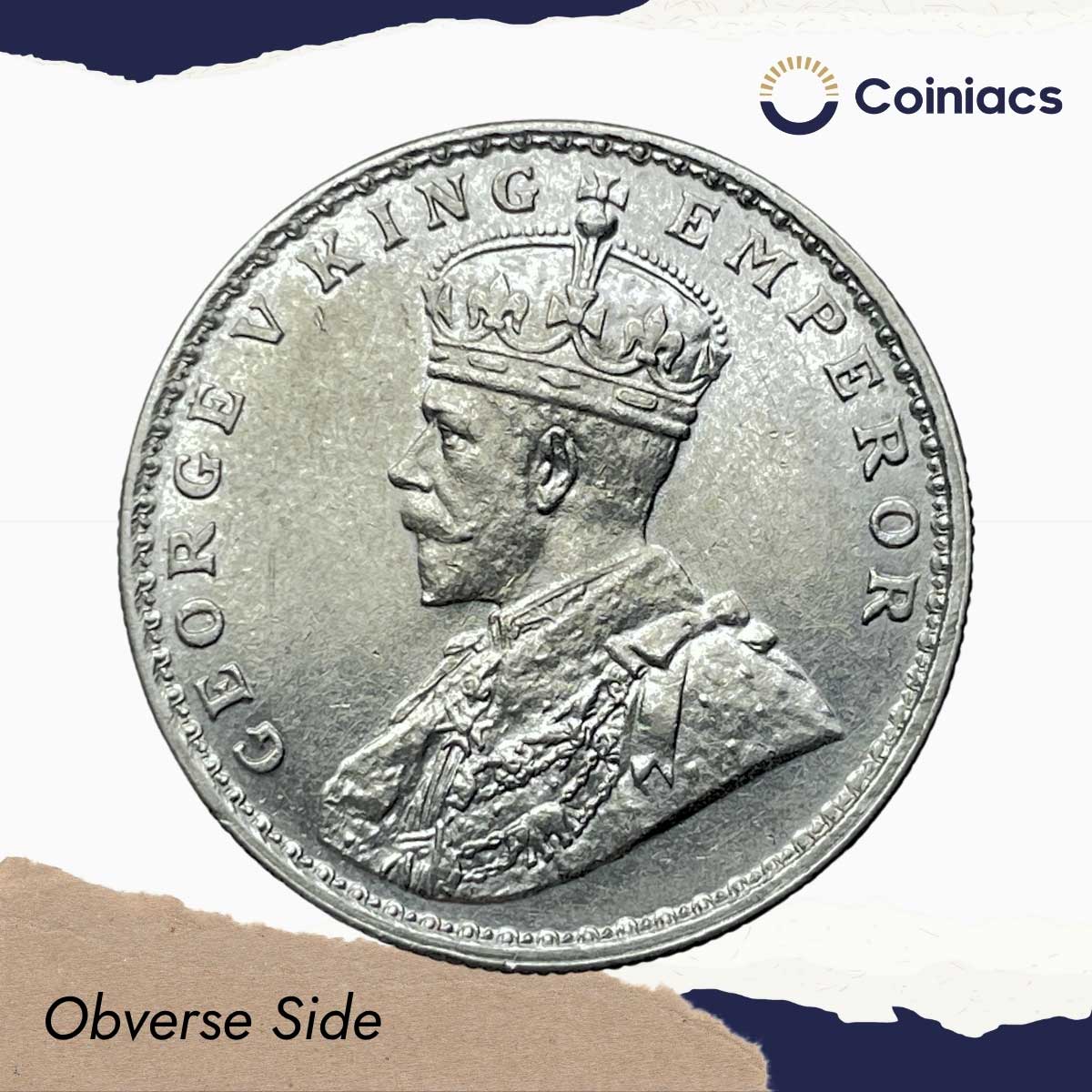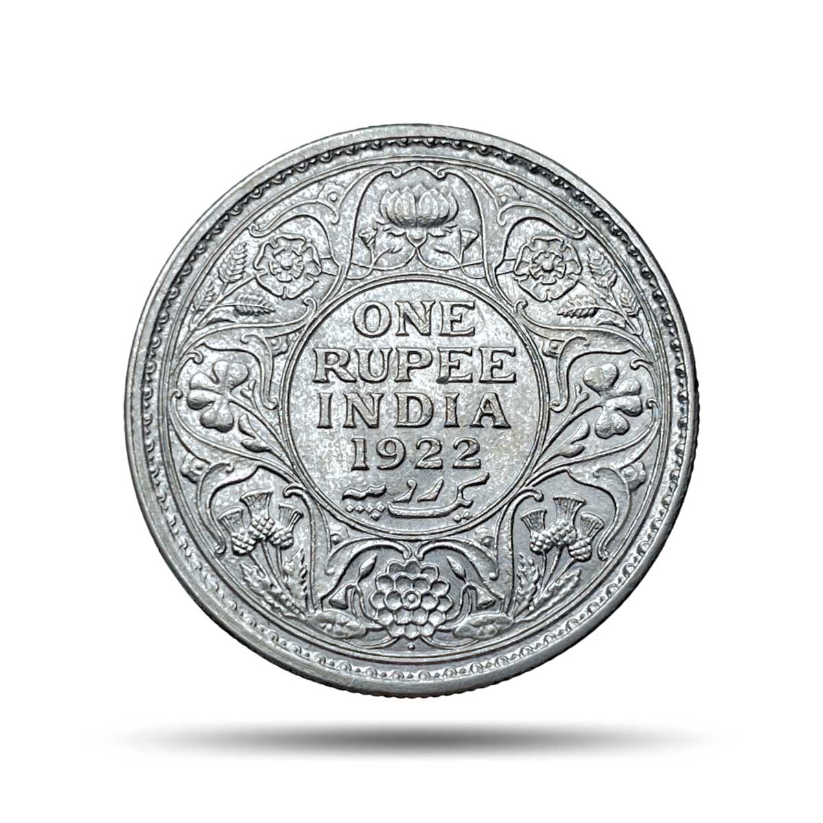 Rare One Rupee George V 1922 CE (Key Date) Bombay Mint Silver coin, British India Uniform Coinage, AUNC.