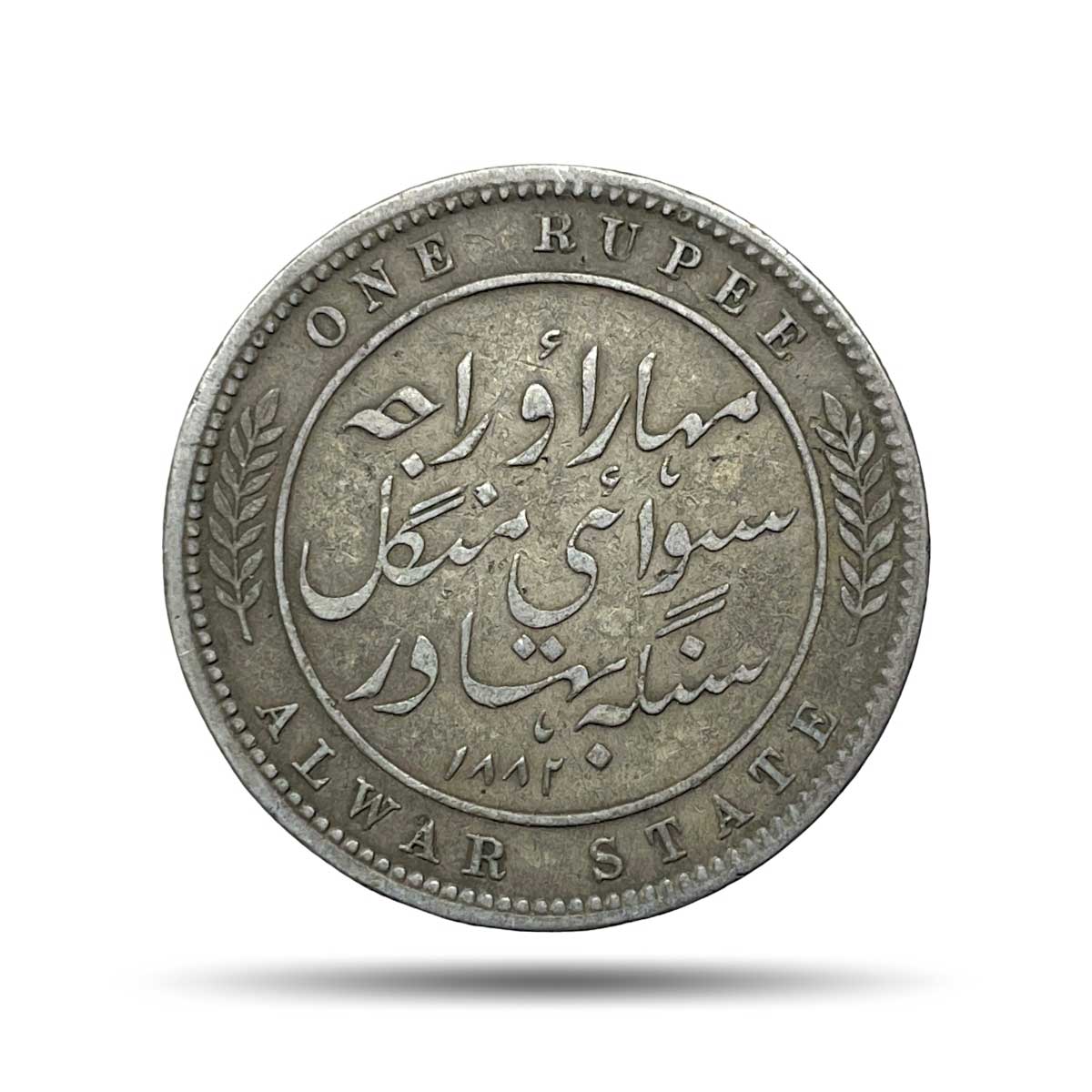 Rare One Rupee Mangal Singh INO Victoria Empress, 1882 CE Silver Coin, Princely State of Alwar Coinage, Collectible. (Maharao Rajah Sawai Mangal Singh Bahadur).