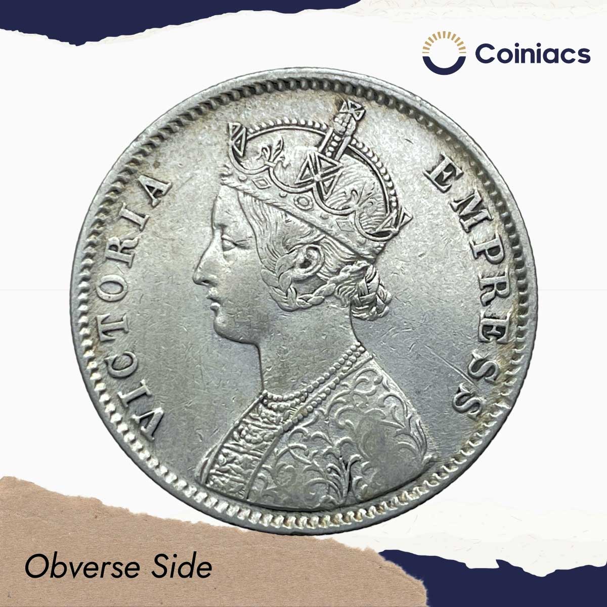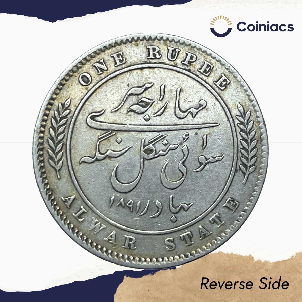 Rare One Rupee Mangal Singh INO Victoria Empress, 1891 CE (Key date) Silver Coin, Princely State of Alwar Coinage, XF. (Maharaja Shri Sawai Mangal Singh bahadur)